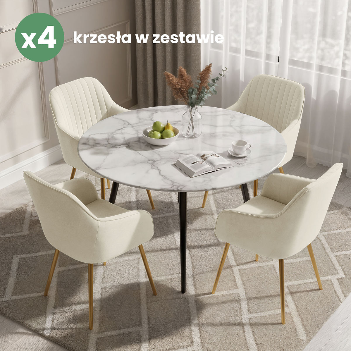 Luka-home.de » Esszimmer a küche / Hochstühle Stuhl / 4x Samtgepolsterter Stuhl mit Steppung Creme FLORENCE Goldene Beine