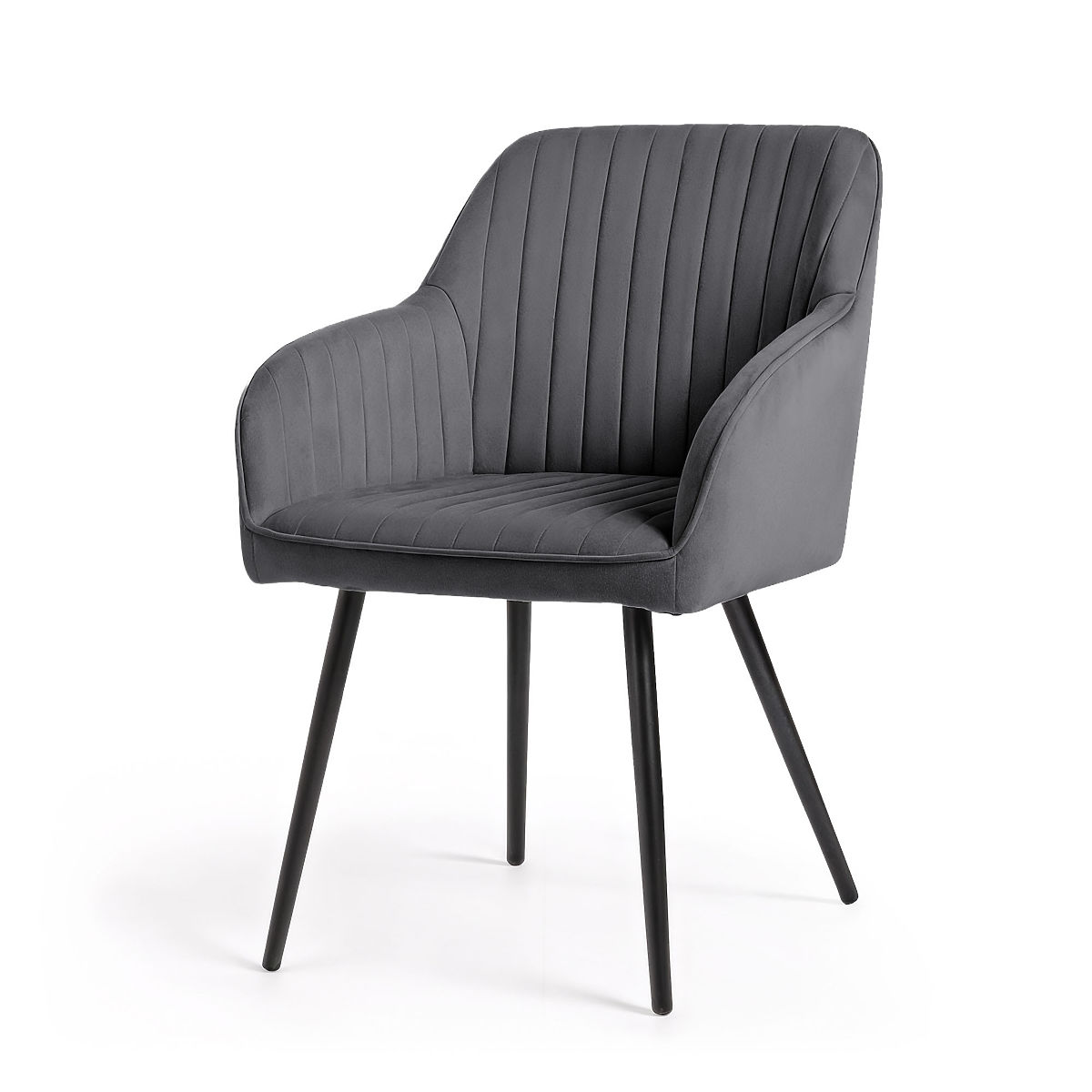 Luka-home.de » Esszimmer a küche / Hochstühle Stuhl / 6x Samtgepolsterter Stuhl mit Steppung Dunkelgrau FLORENCE Schwarze Beine