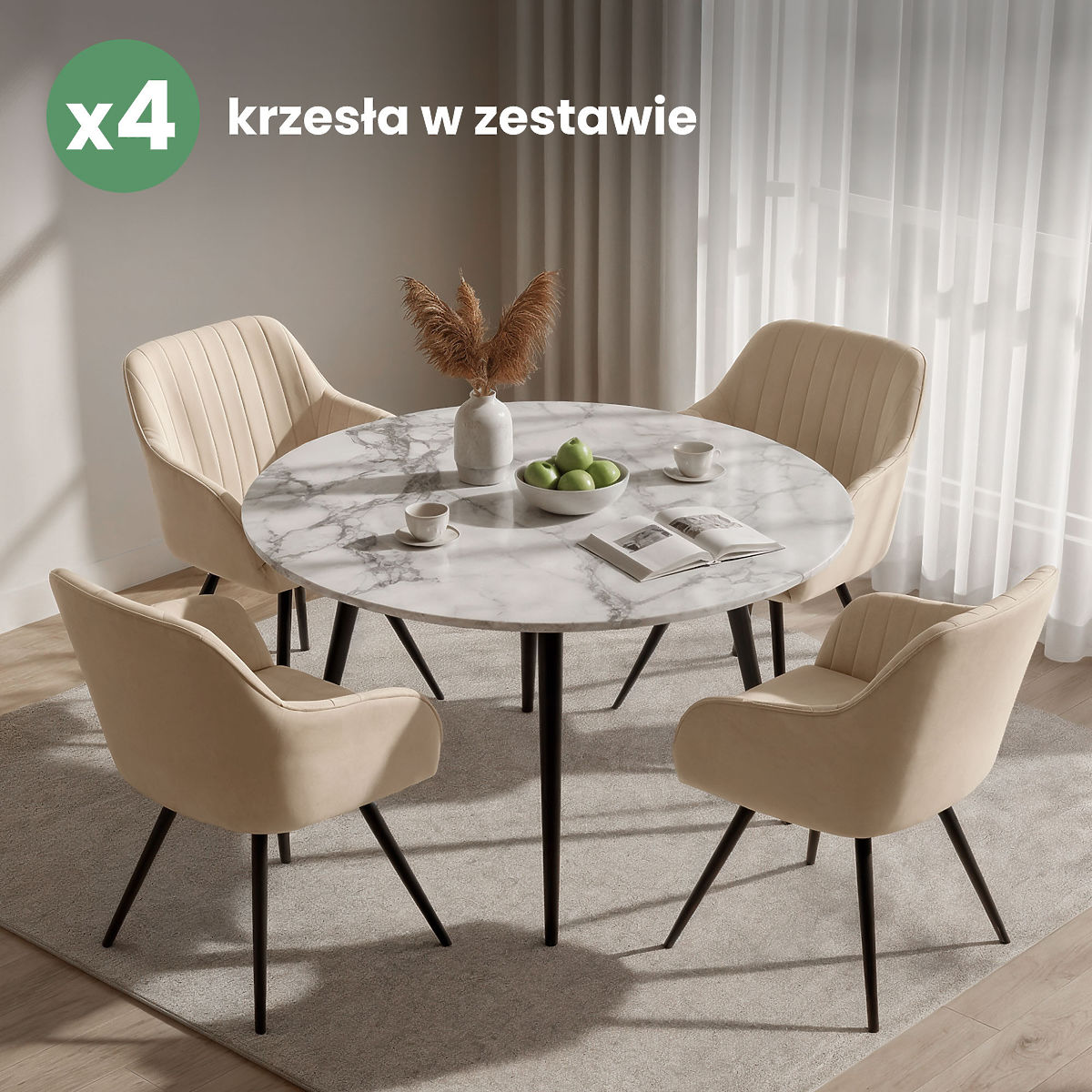 Luka-home.de » Esszimmer a küche / Hochstühle Stuhl / 4x Samt-Drehstuhl mit Steppung Beige TURNO Schwarze Beine