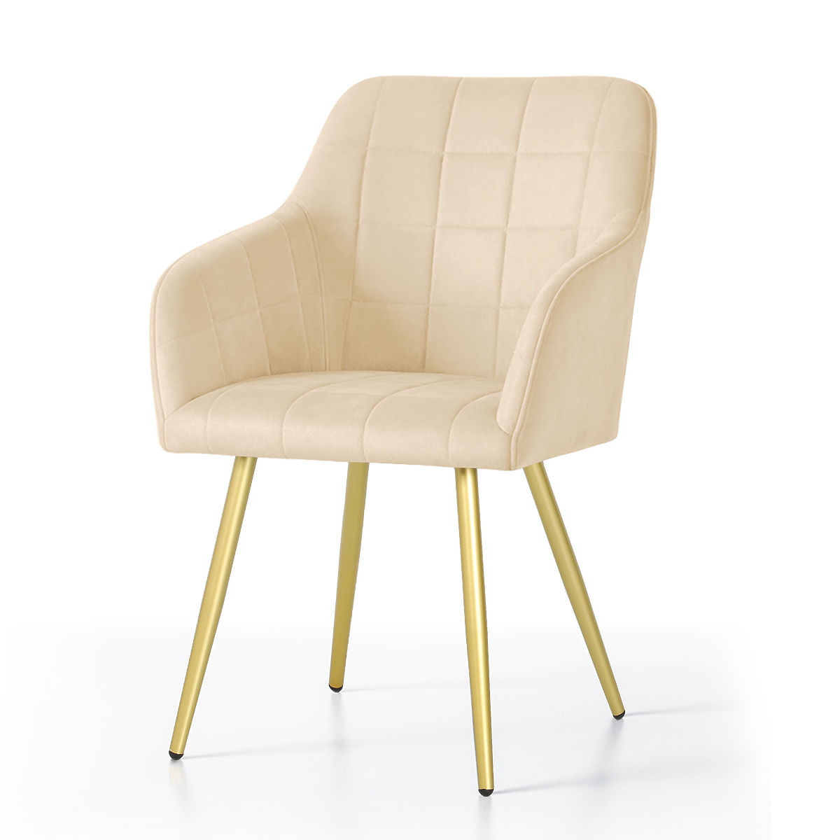 Luka-home.de » Esszimmer a küche / Hochstühle Stuhl / 4x Polsterstuhl mit quadratischer Steppung Beige LUXANO Goldene Beine