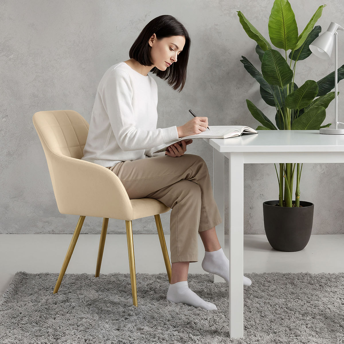 Luka-home.de » Esszimmer a küche / Hochstühle Stuhl / 6x Gepolsterter Stuhl mit quadratischer Steppung Beige LUXANO Goldene Beine