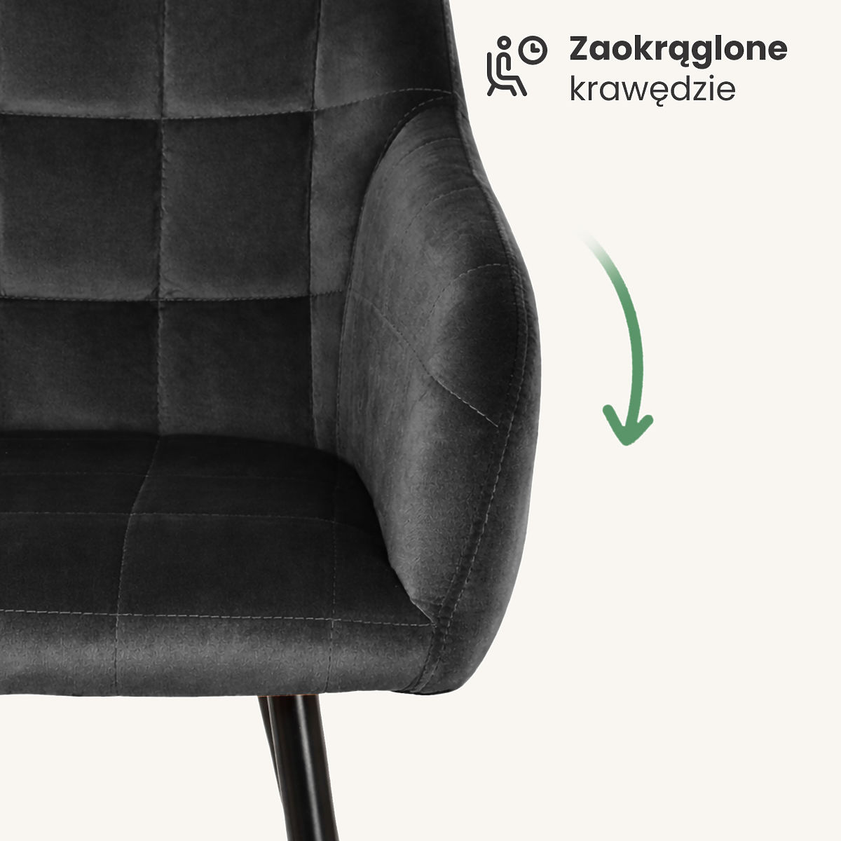 Gepolsterte Stühle kombinieren ästhetisches Aussehen mit Nutzungskomfort und passen gut zu verschiedenen Einrichtungsstilen. Ihre universelle Form macht sie geeignet für Esszimmer, Wohnzimmer oder Büroräume. Erhältlich in zwei Materialvarianten – Lumos-Stoff oder Samt.