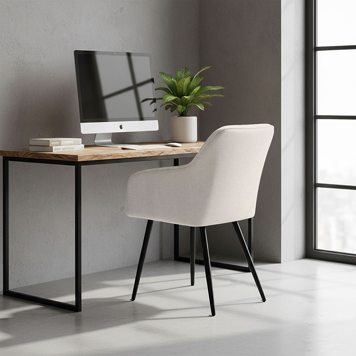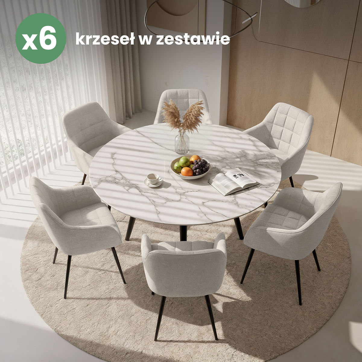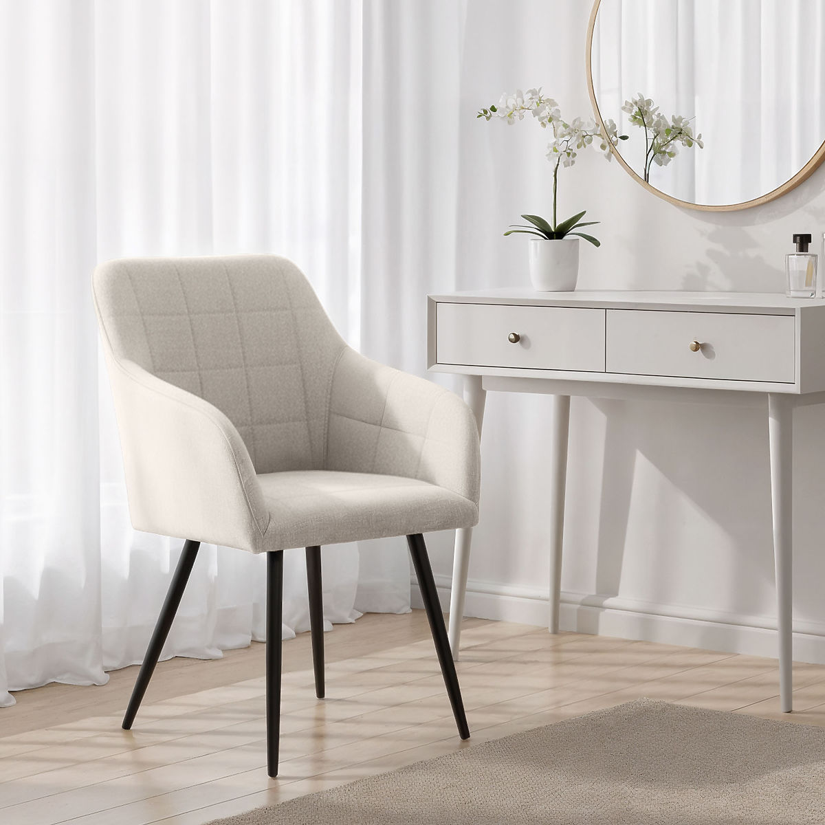 Luka-home.de » Esszimmer a küche / Hochstühle Stuhl / 6x Gepolsterter Stuhl mit quadratischer Steppung Creme LUXANO Schwarze Beine Stoff Lumos
