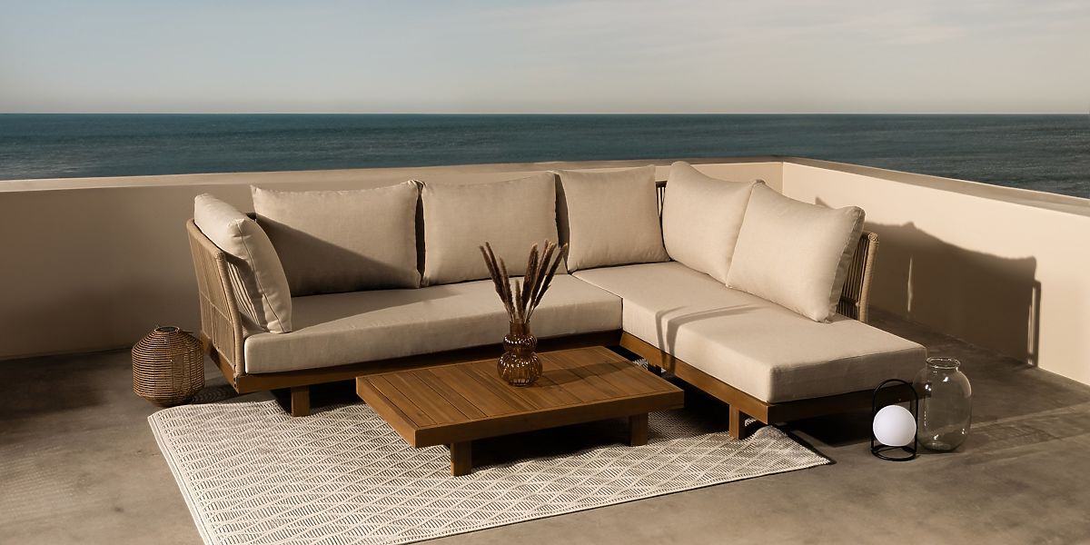 Schaffen Sie Ihre Traum-Entspannungszone im Freien mit unserem Bestseller-Gartenecksofa Borgetto! Seine robuste Konstruktion aus strapazierfähigem Akazienholz und pulverbeschichtetem Aluminium garantiert nicht nur außergewöhnliche Haltbarkeit, sondern auch ein einzigartiges Aussehen, das definitiv Aufmerksamkeit erregt. Die handgeflochtene Rückenlehne aus UV-beständigem Seil ist ein außergewöhnliches Element, das Ihrem Garten oder Ihrer Terrasse einen einzigartigen, designorientierten Charakter verleiht. Zum Ecksofa Borgetto gehören dicke Kissen mit Reißverschluss, die Ihnen außergewöhnlich komfortable Entspannung bieten. Ihre Bezüge sind aus wasserabweisendem, UV-beständigem Polyester gefertigt, jedoch empfehlen wir, sie bei Regen an einem geschützten Ort zu lagern, um ihre Langlebigkeit zu erhalten. Darüber hinaus ergänzt der rechteckige Couchtisch, der Teil des Sets ist, das Ganze perfekt und schafft Raum für Mahlzeiten im Freien oder Entspannung bei einer Tasse Kaffee. Es ist hervorzuheben, dass das zur Herstellung des Sets verwendete Holz FSC®-zertifiziert ist – es stammt aus Wäldern, die nach den Prinzipien der nachhaltigen Entwicklung bewirtschaftet werden. So investieren Sie nicht nur in Komfort, sondern kümmern sich auch um die Zukunft unseres Planeten. Um die Möbel in perfektem Zustand zu halten, wird empfohlen, sie im Winter an einem trockenen und belüfteten Ort unter einem Unterstand zu lagern, um sie vor Witterungseinflüssen zu schützen. Möbel aus Naturholz behalten ihre charakteristischen Eigenschaften, daher werden alle Unebenheiten, Abnutzungen, Kratzer, Äste, Risse, Spalten, Löcher, Vertiefungen, unebene Kanten, verschiedene Texturen, Farbunterschiede und andere Unregelmäßigkeiten in der Struktur während des Herstellungsprozesses bewusst beibehalten. Diese Eigenschaften unterstreichen die Authentizität des Materials und verleihen jedem unserer Produkte einen einzigartigen Charakter, was zu Unterschieden im Aussehen im Vergleich zu den präsentierten Fotos führen kann.