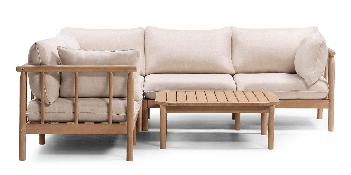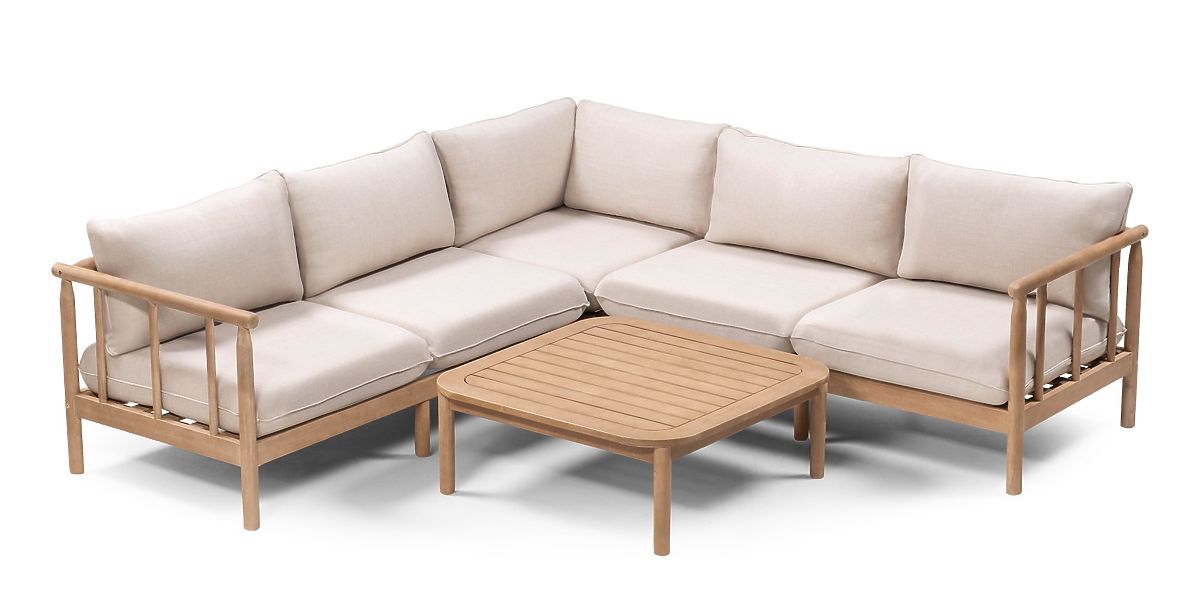 Gartenecksofa mit Tisch Mortlake, Eukalyptusholz FSC, Teakoptik, hellbeige/pr