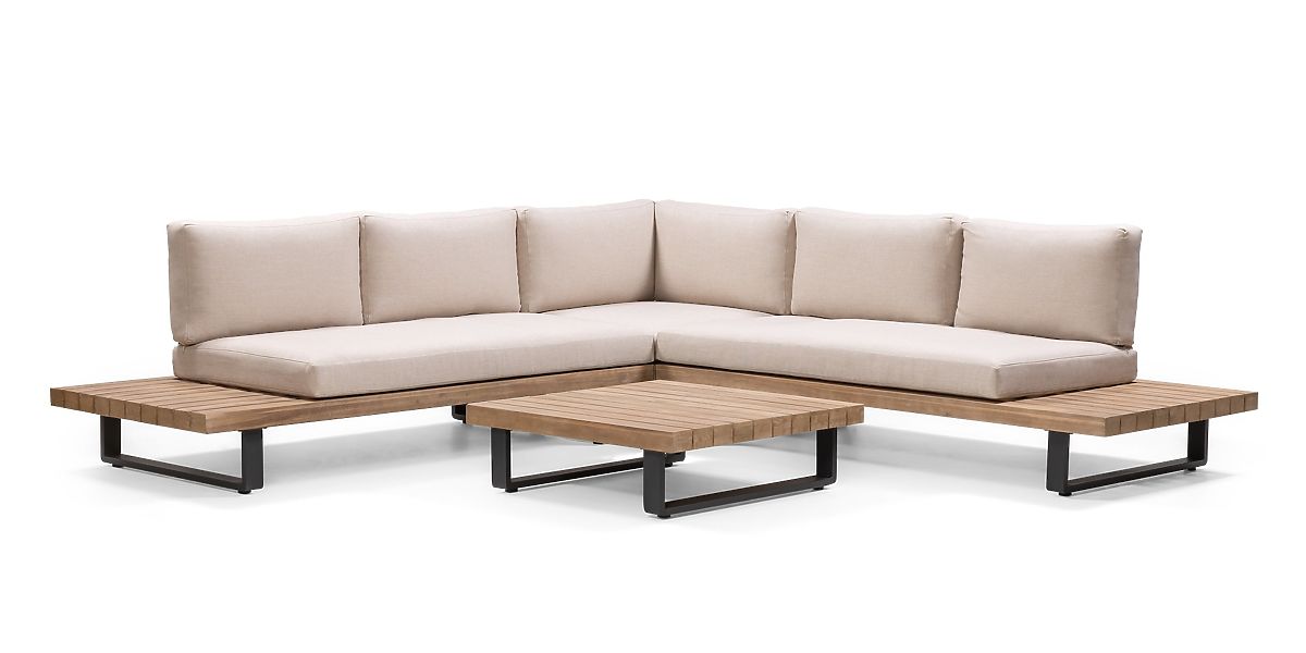 Gartenecksofa mit Tisch Borgo, Akazienholz FSC, Teak-Optik, Beige