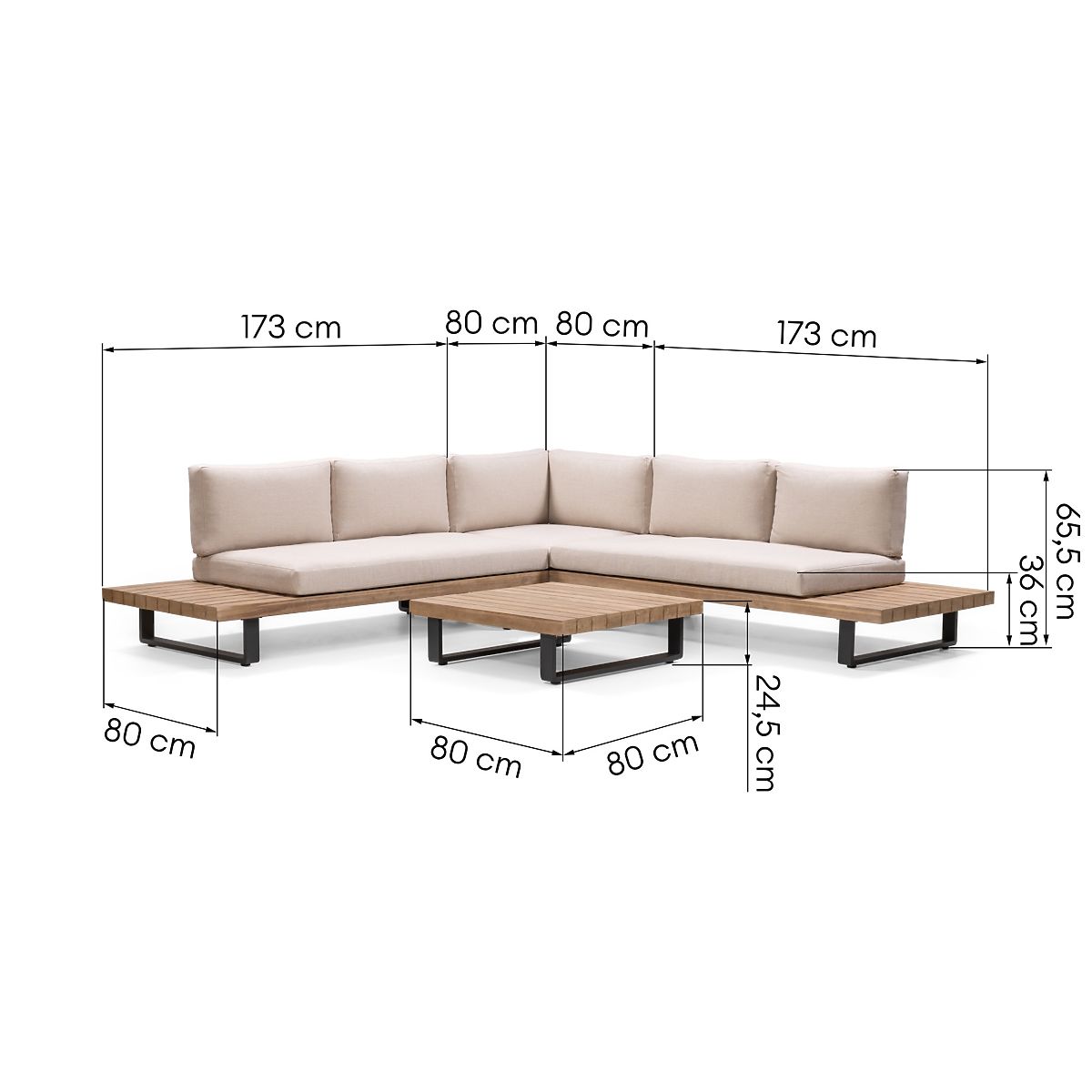 Das Ecksofa Borgo vereint außergewöhnliches Design und Funktionalität und darf in Ihrem Garten nicht fehlen. Gefertigt aus einer robusten, pulverbeschichteten Aluminiumkonstruktion und langlebigem Akazienholz, garantiert es nicht nur ein ästhetisches Erscheinungsbild, sondern auch Langlebigkeit über viele Saisons. Komfort ist ein Schlüsselelement jeder Erholung im Freien, daher ist das Ecksofa Borgo mit weichen Kissen mit abnehmbaren Bezügen ausgestattet. Der verwendete Stoff hat hydrophobe Eigenschaften, jedoch empfehlen wir zur Erhaltung seiner Langlebigkeit, ihn bei Regen an einem geschützten Ort zu lagern. Ein weiterer Vorteil ist der beigefügte Tisch und die praktischen Ablagen an den Enden des Sofas, die zusätzlichen Platz für Ihr Lieblingsbuch, Kaffee oder Snack bieten. Es ist hervorzuheben, dass das zur Herstellung des Sets verwendete Holz das FSC®-Zertifikat trägt – es stammt aus Wäldern, die nach den Prinzipien der nachhaltigen Entwicklung bewirtschaftet werden. So investieren Sie nicht nur in Komfort, sondern sorgen auch für die Zukunft unseres Planeten. Möbel aus Naturholz behalten ihre charakteristischen Eigenschaften, daher werden alle Unebenheiten, Abnutzungen, Kratzer, Äste, Risse, Spalten, Löcher, Vertiefungen, unebene Kanten, verschiedene Maserungen, Farbunterschiede und andere Unregelmäßigkeiten in der Struktur während des Herstellungsprozesses bewusst beibehalten. Diese Eigenschaften unterstreichen die Authentizität des Materials und verleihen jedem unserer Produkte einen einzigartigen Charakter, was zu Unterschieden im Aussehen im Vergleich zu den präsentierten Fotos führen kann. Um die Möbel in einwandfreiem Zustand zu halten, wird empfohlen, sie im Winter an einem trockenen und belüfteten Ort unter einem Unterstand zu lagern, um Schutz vor Witterungseinflüssen zu gewährleisten.