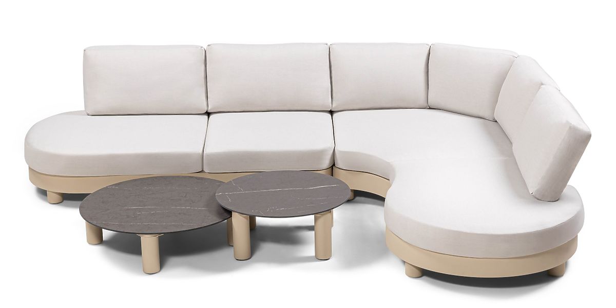 Luka-home.de » Gartenmöbel / Gartensofas / Garten Ecksofa mit 2 Tischen Santa Ana, Aluminium, Beige, Marmor Dekoration, runde Formen