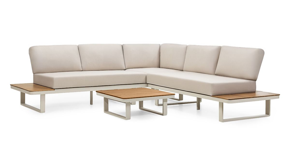 Luka-home.de » Gartenmöbel / Gartensofas / Gartenecksofa mit Tisch Porticato, Akazienholz FSC, Teak-Optik, hellbeige
