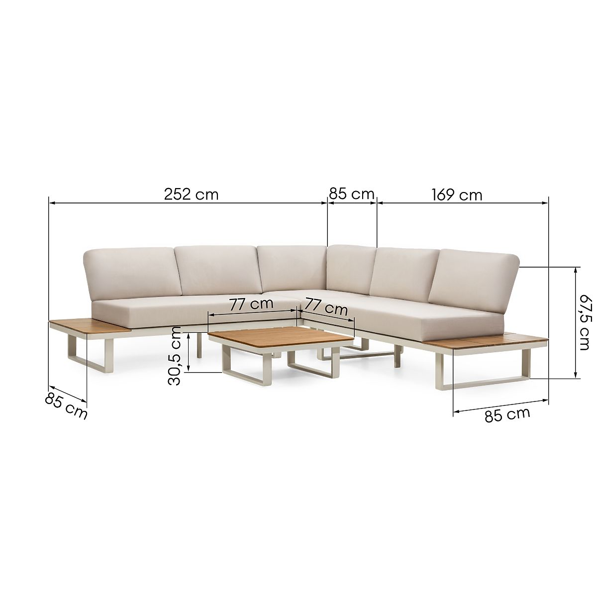 Gartenecksofa Porticato aus Akazienholz mit Teak-Optik und hellbeigen Kissen. .. mehr