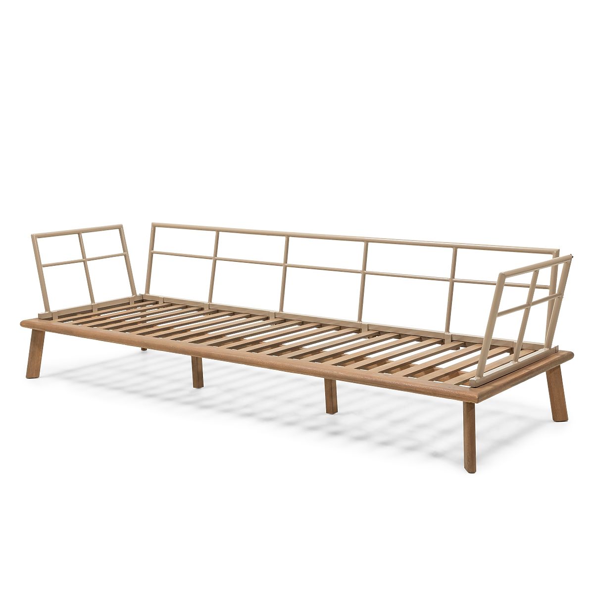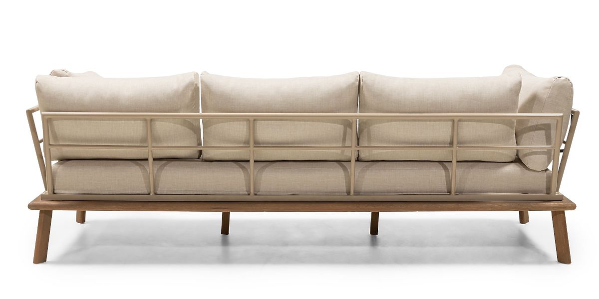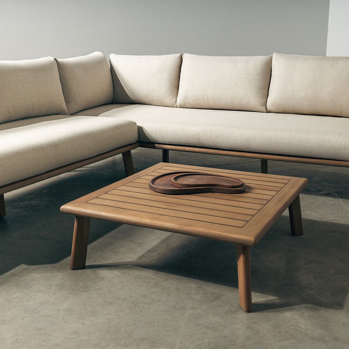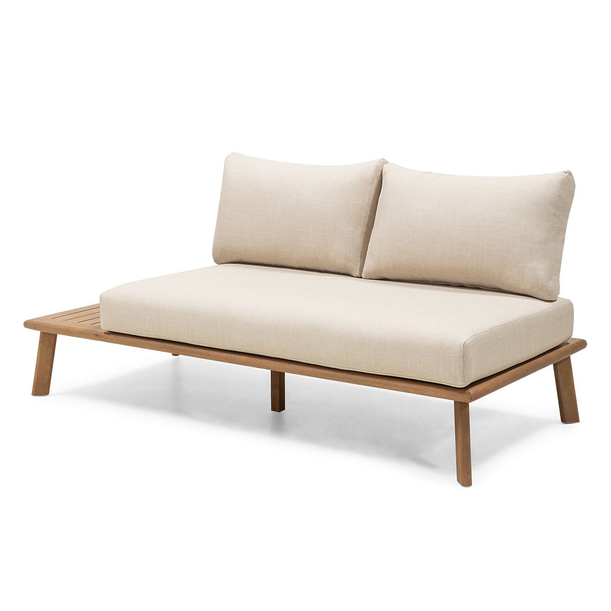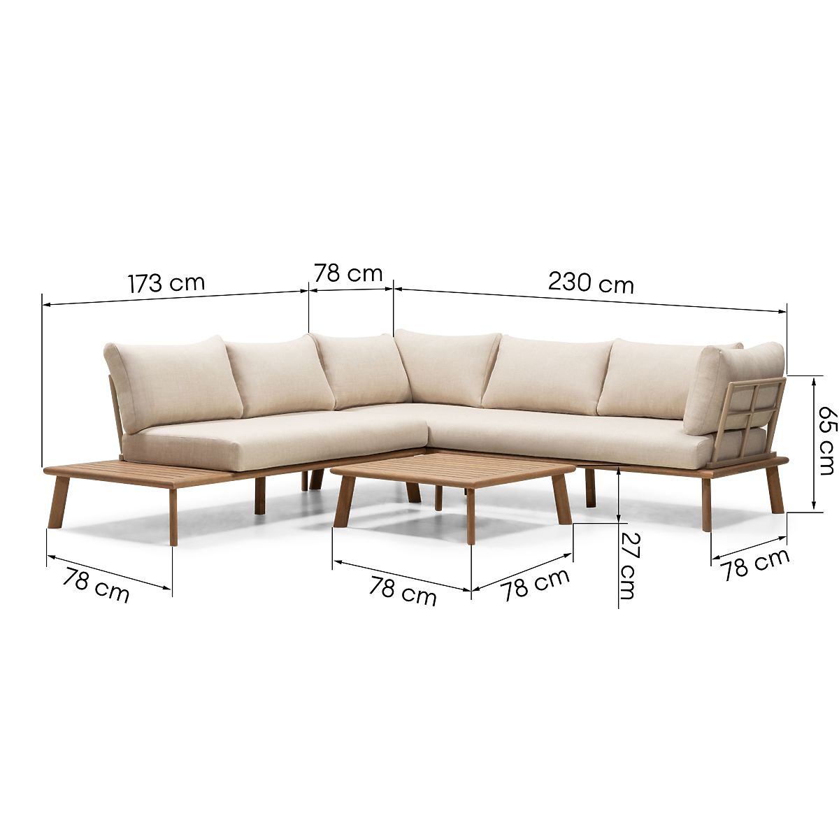 Ecksofa Penne aus Eukalyptusholz mit beigen Aluminiumlehnen und Couchtisch. .. mehr