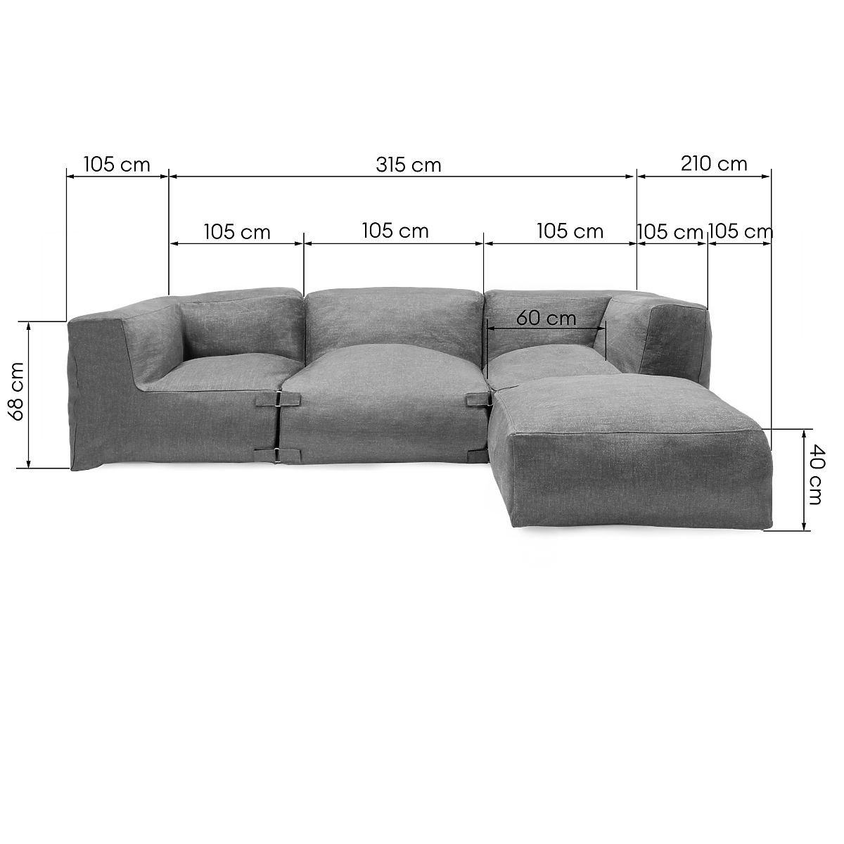 Das modulare Ecksofa Vacuum, bestehend aus vier Elementen, ist die ideale Lösung für alle, die Komfort, Eleganz und Praktikabilität im Garten schätzen. Sein modernes Design in stilvollem grauen Stoff passt perfekt zu Terrassen-, Garten- und Balkonarrangements und schafft einen einzigartigen Ort zur Entspannung im Freien. Dank der speziellen TPU-Beschichtung hat der Stoff wasserabweisende Eigenschaften, behält jedoch seine angenehme Weichheit und Atmungsaktivität. Vacuum ist nicht nur ein Möbelstück – es ist eine Möglichkeit, einen Ort zu schaffen, an dem Sie sich nach einem anstrengenden Tag erholen können. Jedes der vier Module hat eine leichte Konstruktion, sodass Sie die Anordnung des Sofas leicht nach Ihren Bedürfnissen ändern können. Weiche, bequeme Sitze sorgen für vollen Komfort und die mitgelieferten Bezüge schützen vor Verschmutzung und leichtem bis mäßigem Regen, widerstandsfähig gegen einen Wasserdruck bis zu 1.000 mm. Das ist Funktionalität, die in jedem Raum hervorragend funktioniert. Das Ecksofa Vacuum passt sich Ihrem Lebensstil an – die modulare Konstruktion ermöglicht eine einfache Anpassung der Anordnung an den verfügbaren Raum. Bei schlechtem Wetter genügt es, die Möbel zu verstauen, um ihre Langlebigkeit über Jahre hinweg zu bewahren. Es ist ein elegantes und bequemes Ecksofa, das zum zentralen Punkt Ihres Gartenbereichs wird.