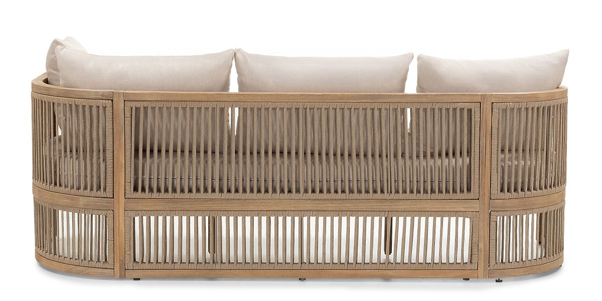 Die Gartenmöbel Vetralla sind ein echtes Schmuckstück für Ihren Garten! Ihre einzigartige, abgerundete Form zieht die Aufmerksamkeit auf sich und verleiht dem Raum einen modernen und gleichzeitig gemütlichen Charakter. Es ist die ideale Wahl für diejenigen, die die Schönheit der Natur in vollen Zügen genießen möchten, umgeben von Möbeln, die Eleganz mit Funktionalität verbinden. Das Set enthält: ein Ecksofa für 5 Personen, bestehend aus zwei verbundenen Modulen, und einen ovalen Tisch. Das gesamte Set besteht aus einer Kombination von Aluminium und robustem Akazienholz mit einer Teak-Oberfläche, die nicht nur für ein schönes Aussehen, sondern auch für außergewöhnliche Haltbarkeit sorgt. Das Geflecht aus strapazierfähigem Seil verleiht den Möbeln eine sanfte Leichtigkeit, und die weichen, hellbeigen Kissen mit Polyesterbezügen bieten maximalen Komfort, der jeden Moment der Entspannung verschönert. Der verwendete Stoff hat hydrophobe Eigenschaften, jedoch empfehlen wir, zur Erhaltung seiner Langlebigkeit die Lagerung an einem geschützten Ort während des Regens. Möbel aus Naturholz behalten ihre charakteristischen Eigenschaften, daher werden alle Unebenheiten, Abnutzungen, Kratzer, Äste, Risse, Spalten, Löcher, Vertiefungen, unebene Kanten, unterschiedliche Holzmaserungen, Farbunterschiede und andere Unregelmäßigkeiten in der Struktur während des Herstellungsprozesses bewusst beibehalten. Diese Eigenschaften unterstreichen die Authentizität des Materials und verleihen jedem unserer Produkte einen einzigartigen Charakter, was zu Unterschieden im Aussehen im Vergleich zu den präsentierten Fotos führen kann. Um die Möbel lange in perfektem Zustand zu halten, wird empfohlen, sie im Winter an einem trockenen und belüfteten Ort unter einem Unterstand zu lagern, um Schutz vor Witterungseinflüssen zu gewährleisten.
