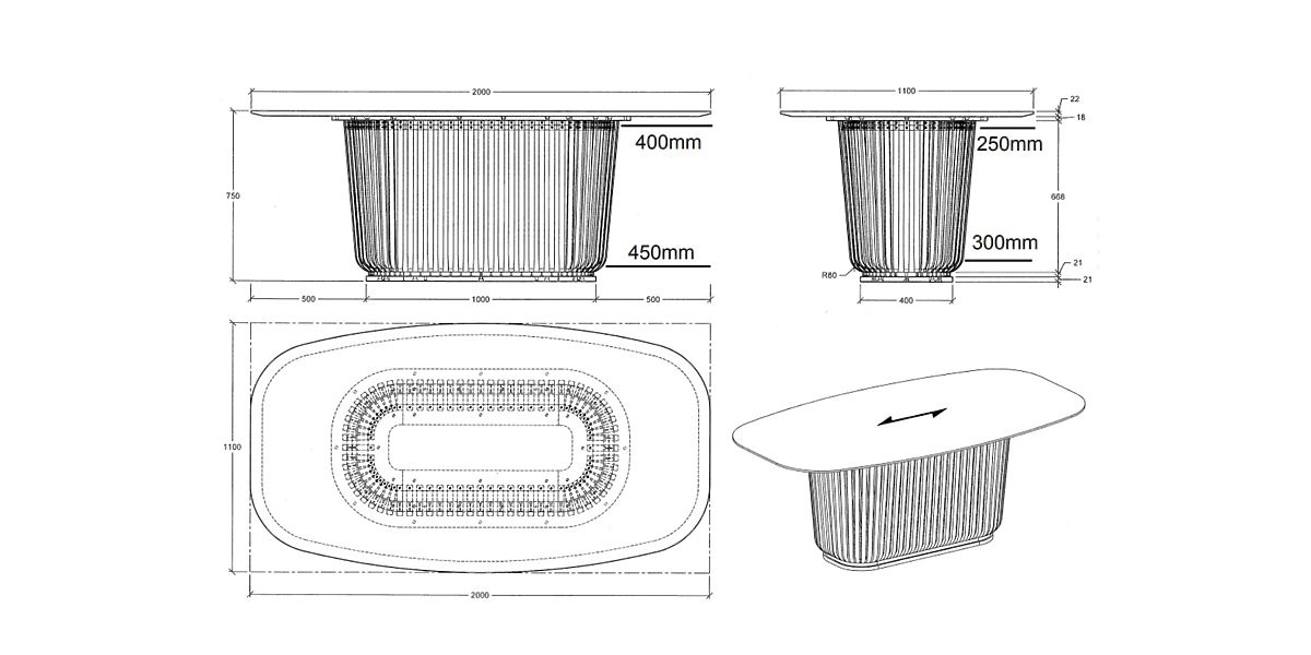 Einzigartiger Esstisch mit dekorativen Lamellen. .. mehr