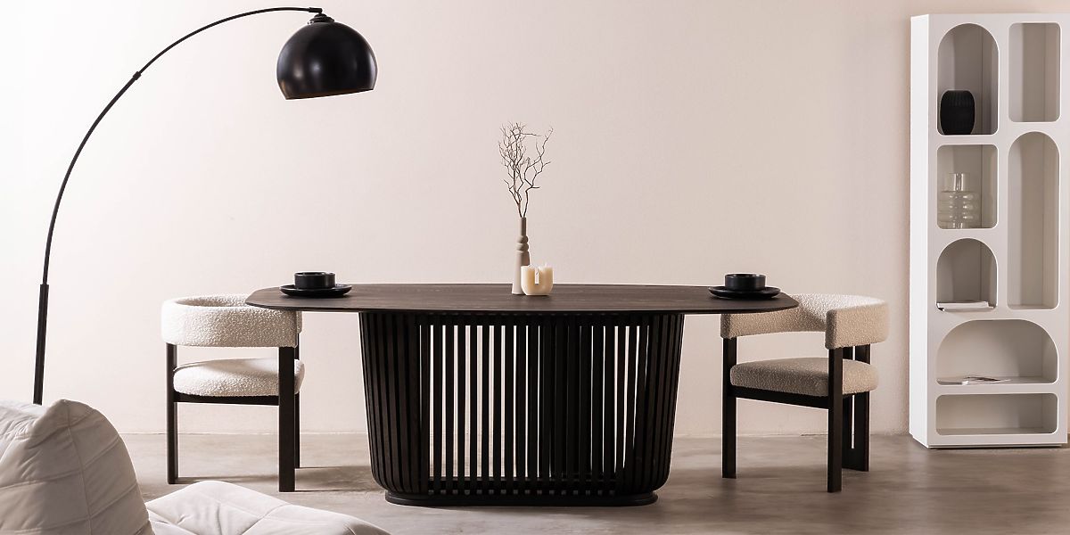 Luka-home.de   »   Esszimmer und Küche   /   Esstische   /   Esstisch mit Lamellen Araia Esche schwarz