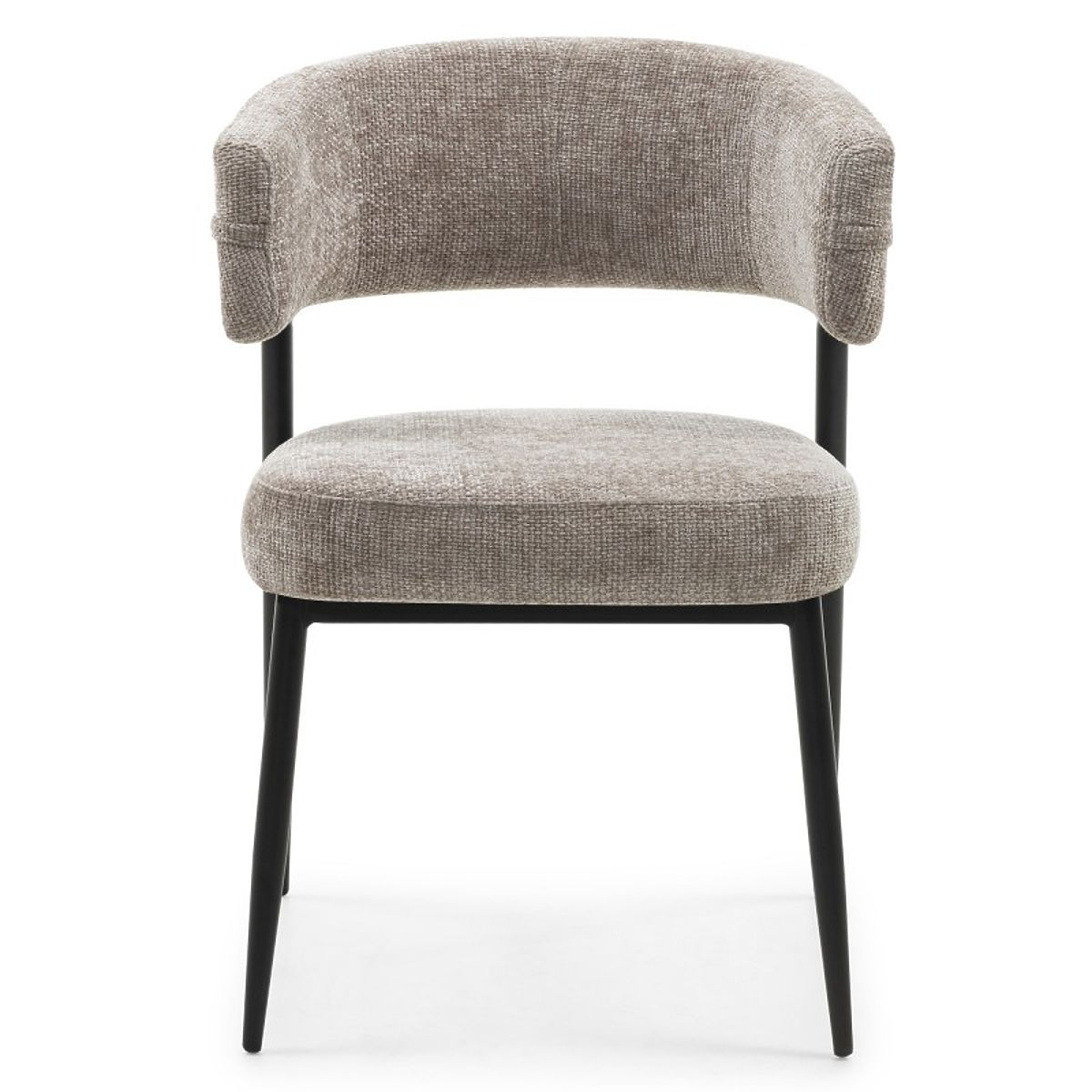 Eleganter Stuhl mit beiger Polsterung und schwarzer Metallkonstruktion. .. mehr