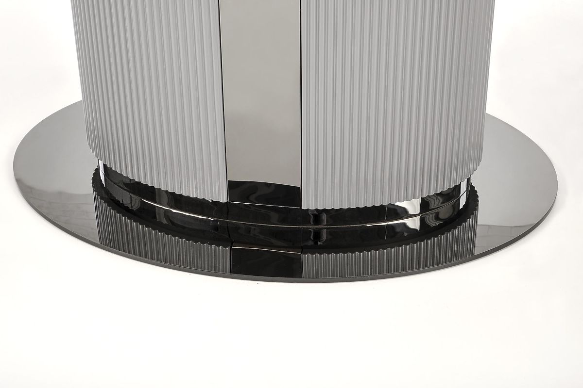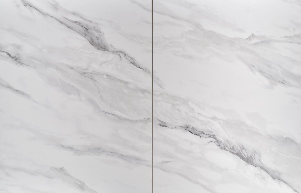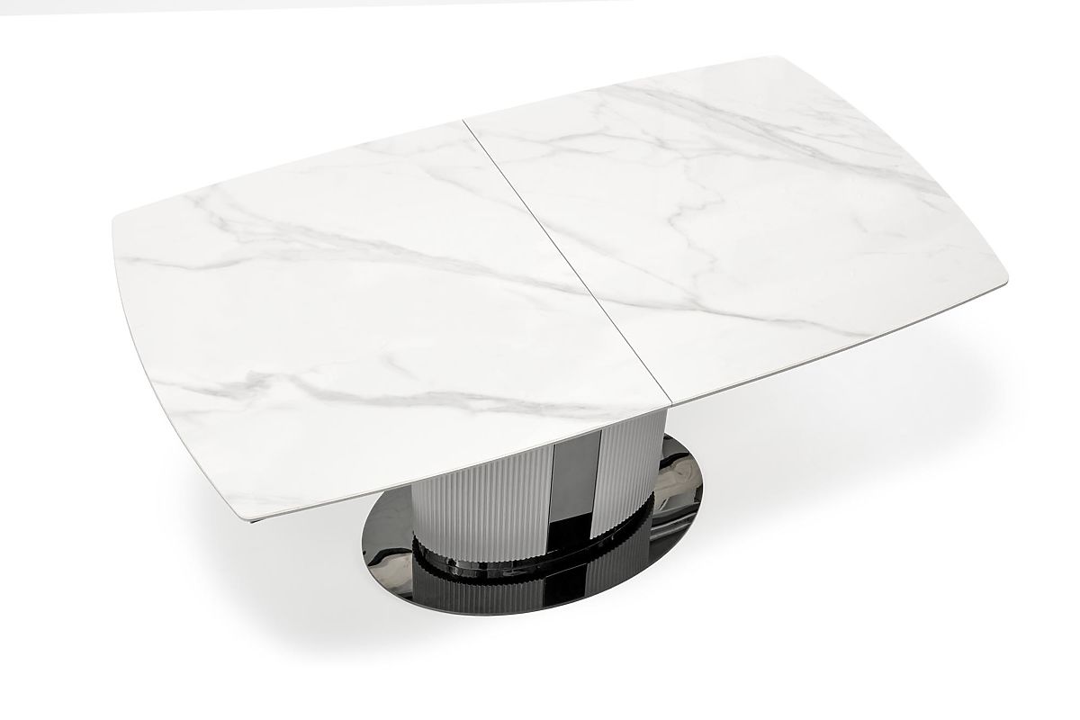 Ausziehbarer Tisch mit weißem Marmor und grauen Akzenten. .. mehr