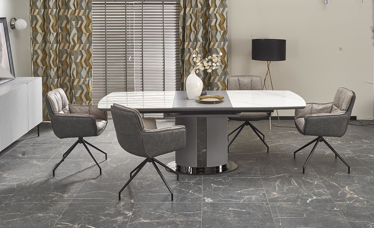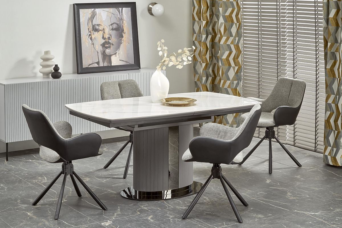 Luka-home.de » Esszimmer und Küche / Esstische / DANCAN ausziehbarer Tisch, weißer Marmor / grau / hellgrau / schwarz (3p=1Stk)