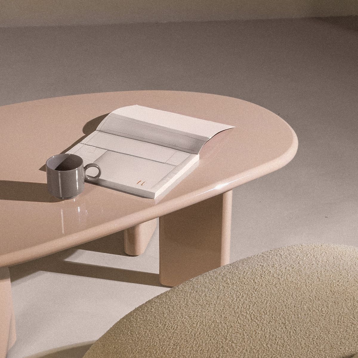 Einzigartiger Couchtisch in Nude-Ton mit Hochglanzoberfläche. .. mehr