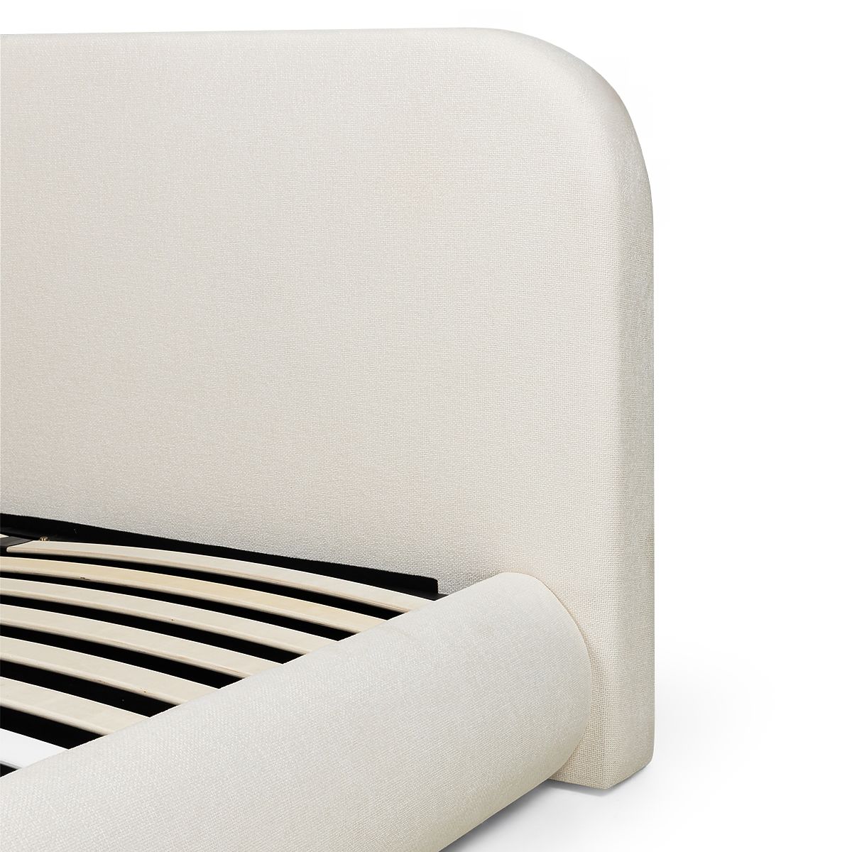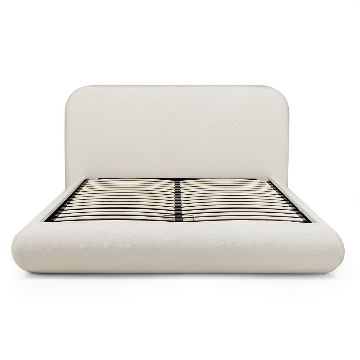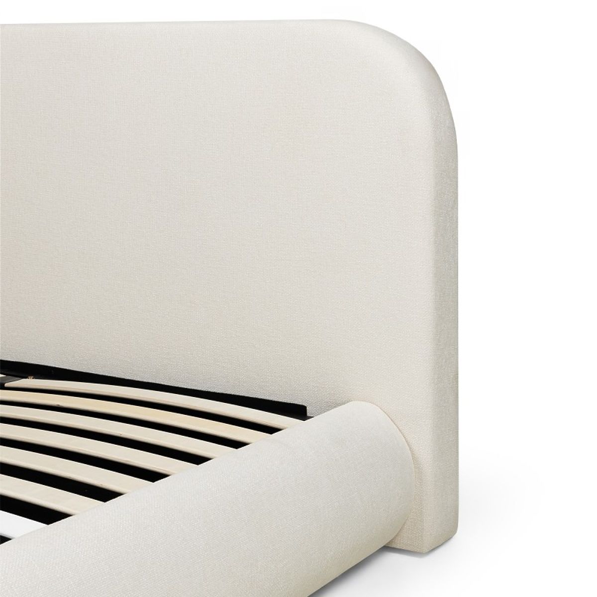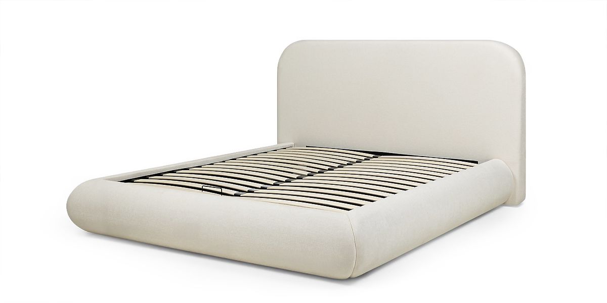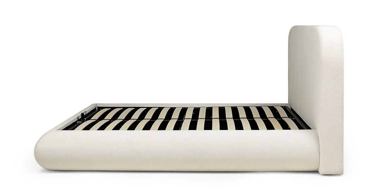Gepolstertes Bett Lumi mit Stauraum und abgerundetem Kopfteil. .. mehr