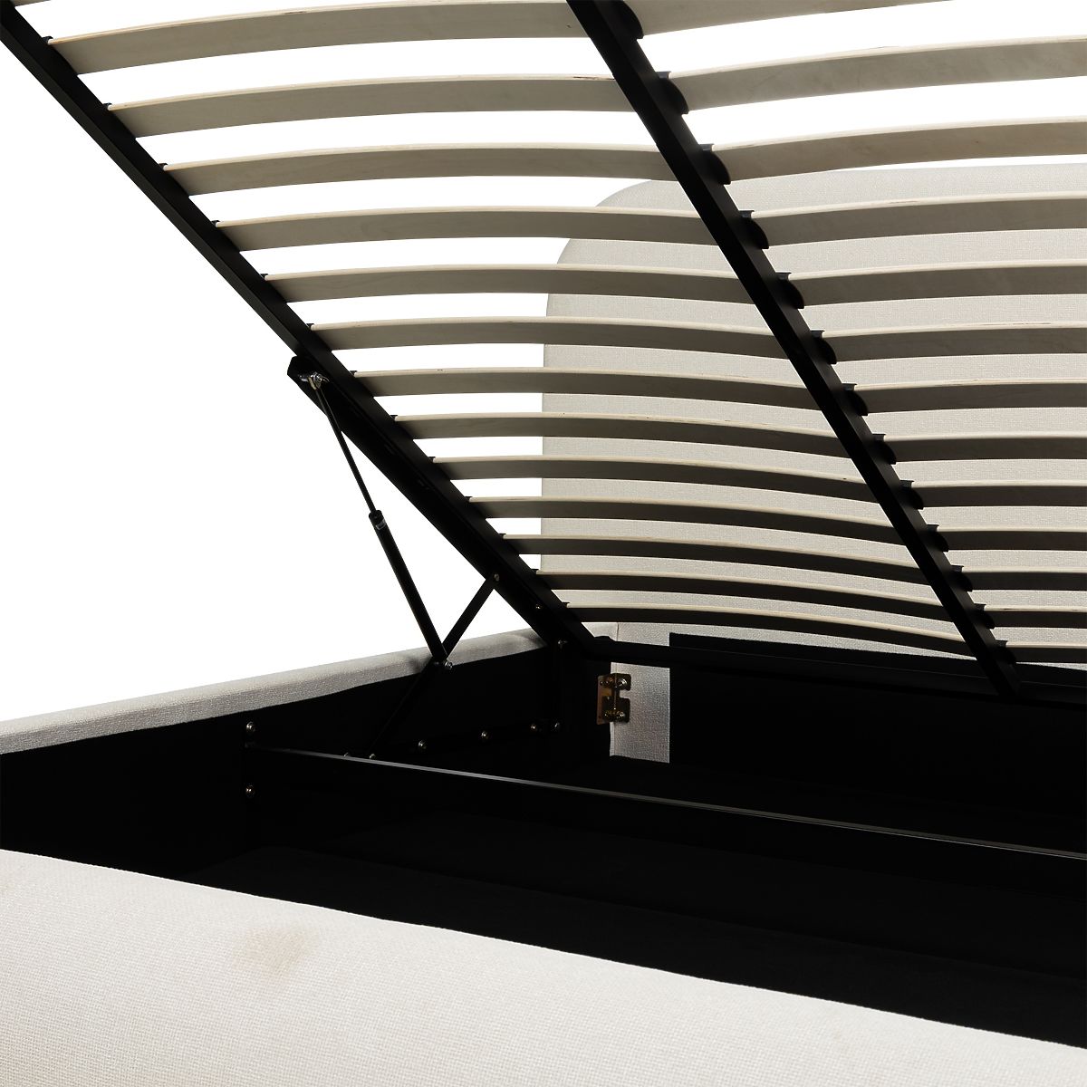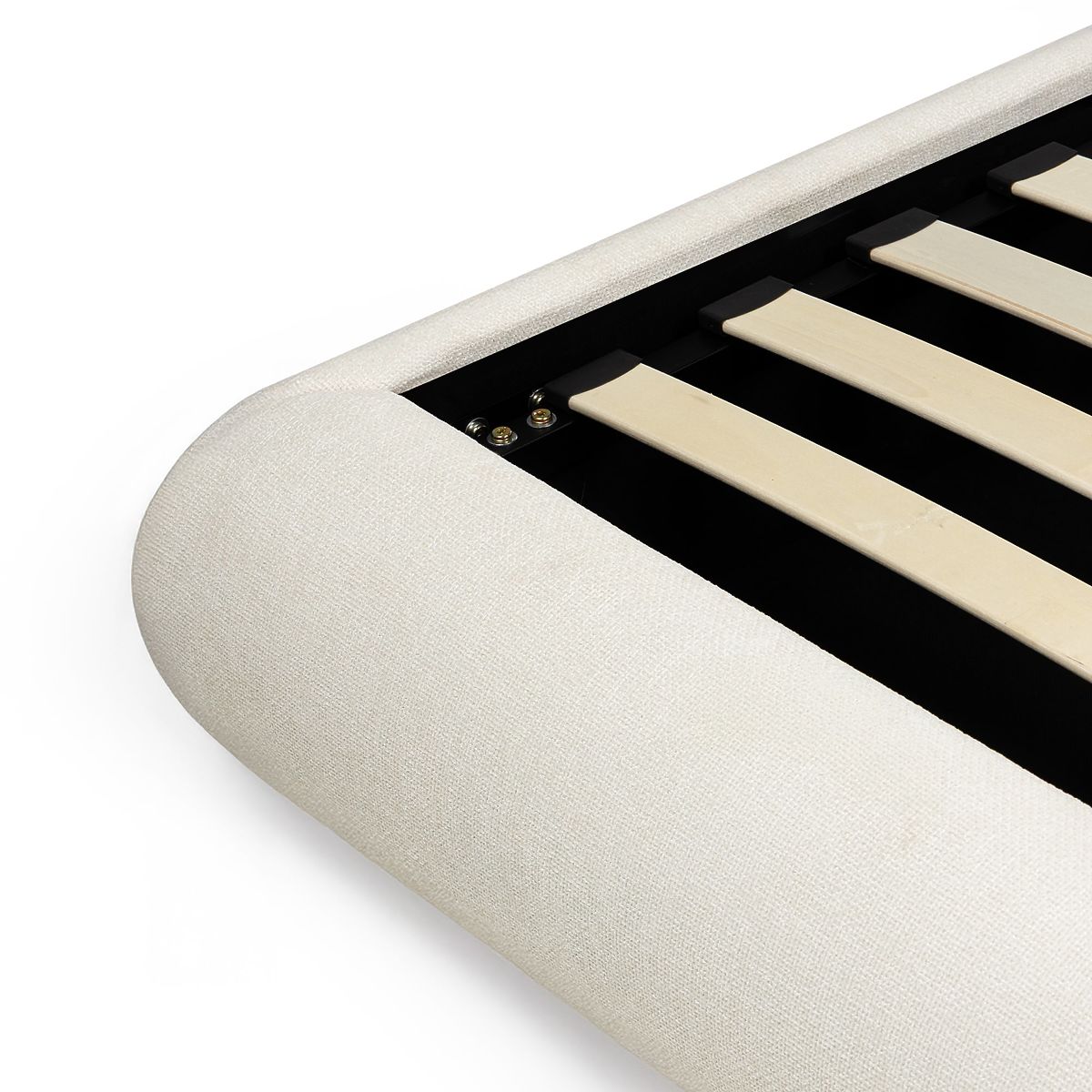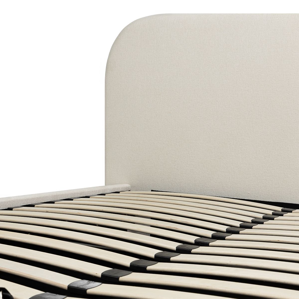 Luka-home.de » Betten / Doppelbetten / Betten 160x200 / Gepolstertes Bett Lumi 160x200 cm, mit Lattenrost und Stauraum, abgerundet, hellbeige