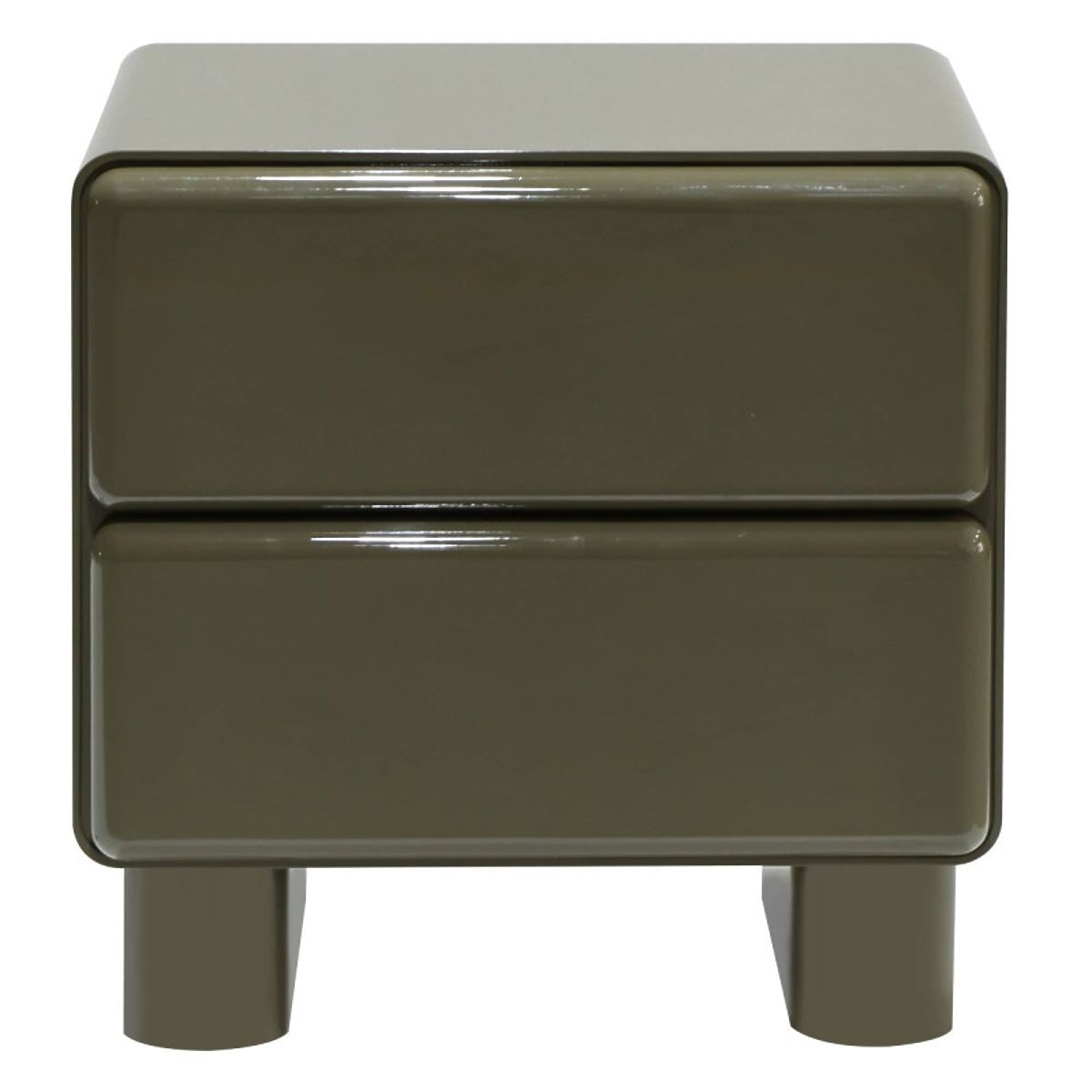Luka-home.de » Tische und Couchtische / Nachttische / Nachttisch mit Schubladen Lagos, grün/grau, abgerundet, glänzend
