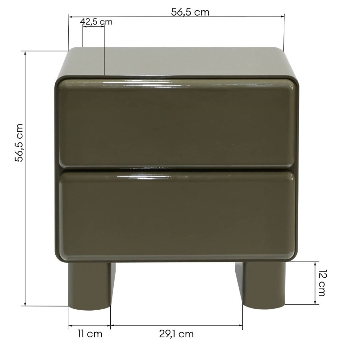 Abgerundeter Nachttisch Lagos in Grün und Grau mit zwei Schubladen. .. mehr