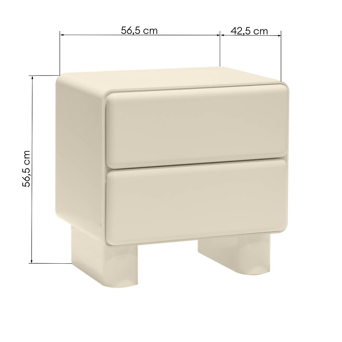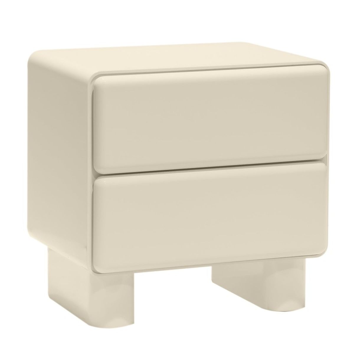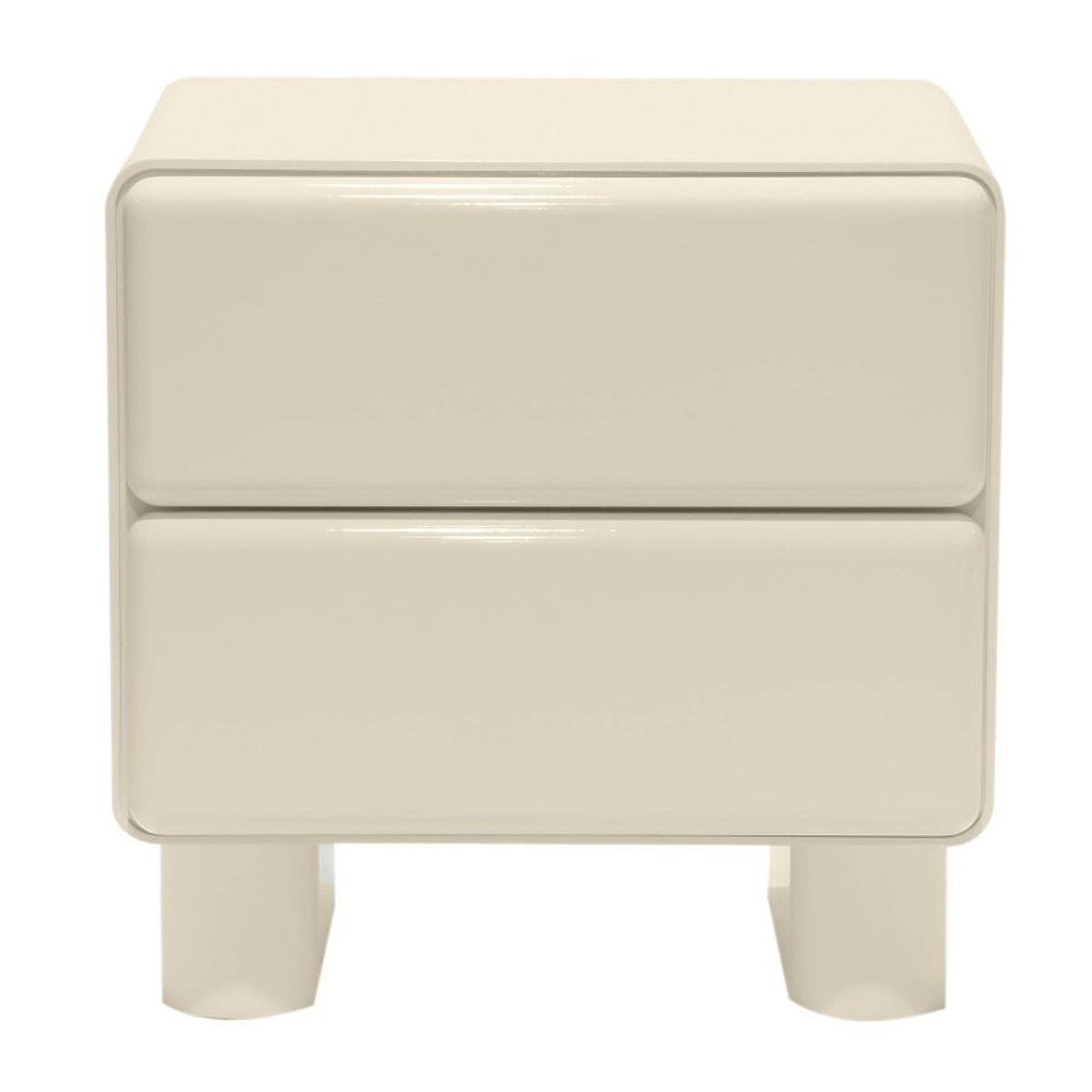 Luka-home.de » Tische und Couchtische / Nachttische / Nachttisch mit Schubladen Lagos, cremeweiß, abgerundet, glänzend
