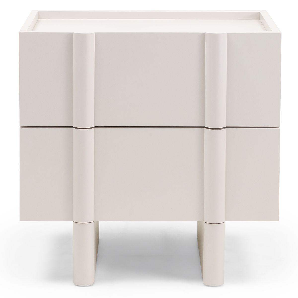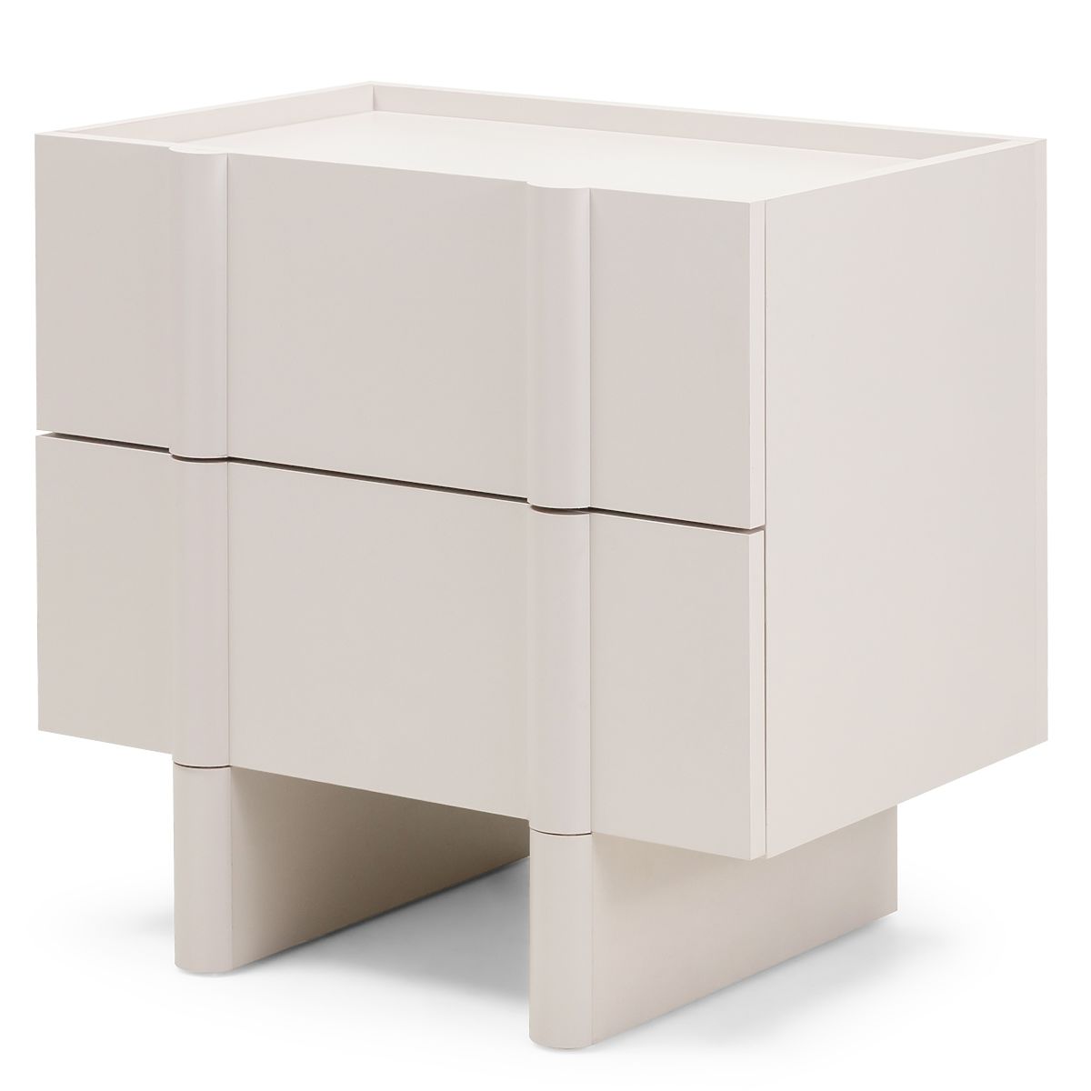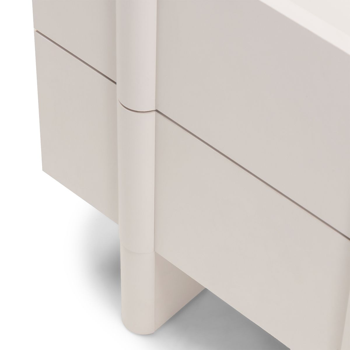 Nachttisch Moss mit kaschmirfarbenem Finish und abgerundeten Kanten. .. mehr
