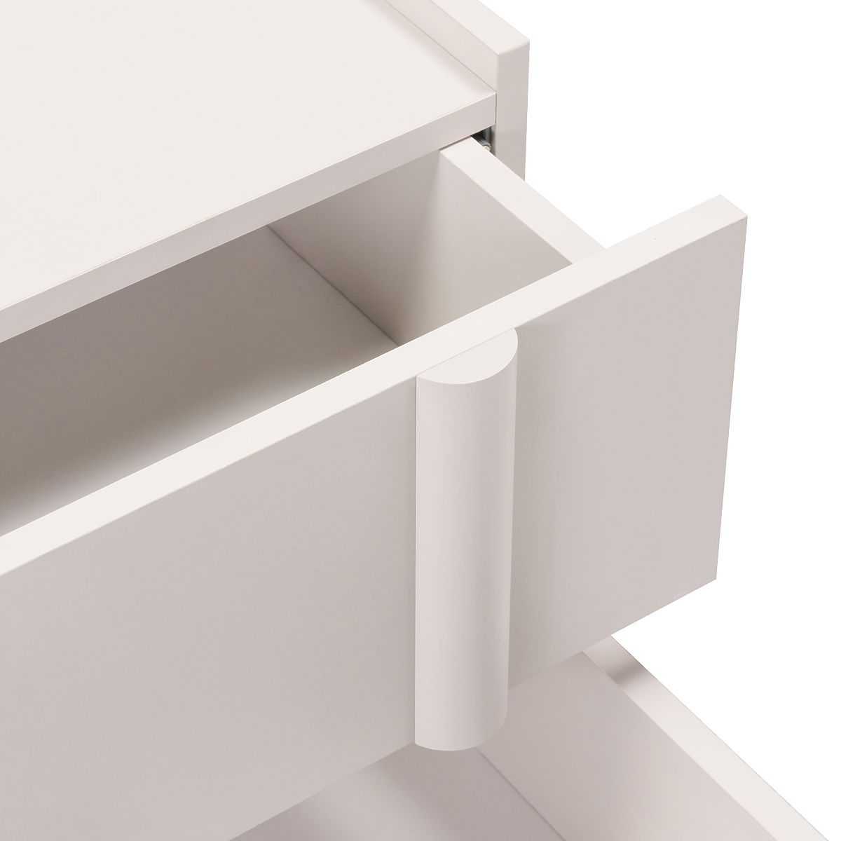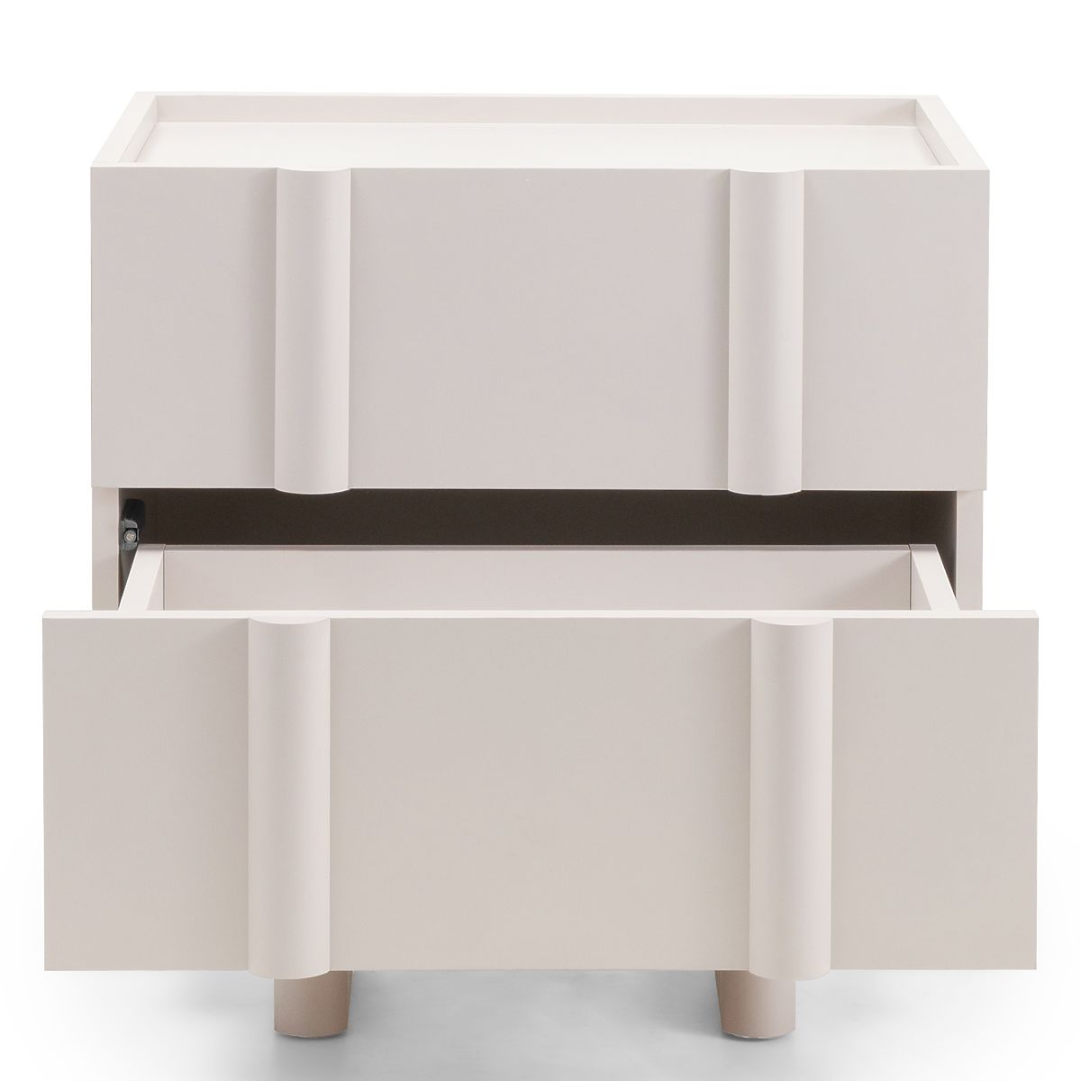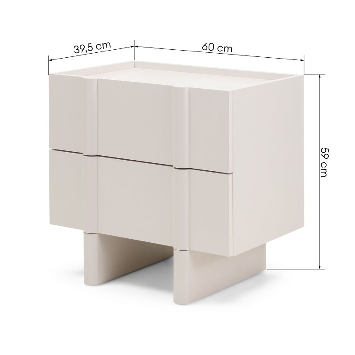 Nachttisch Moss mit kaschmirfarbenem Finish und abgerundeten Kanten. .. mehr