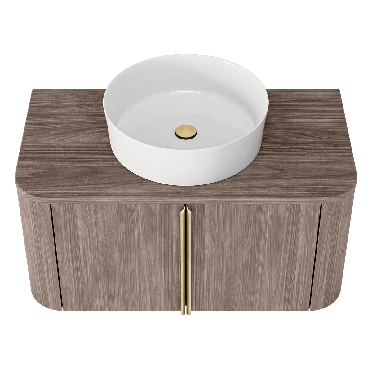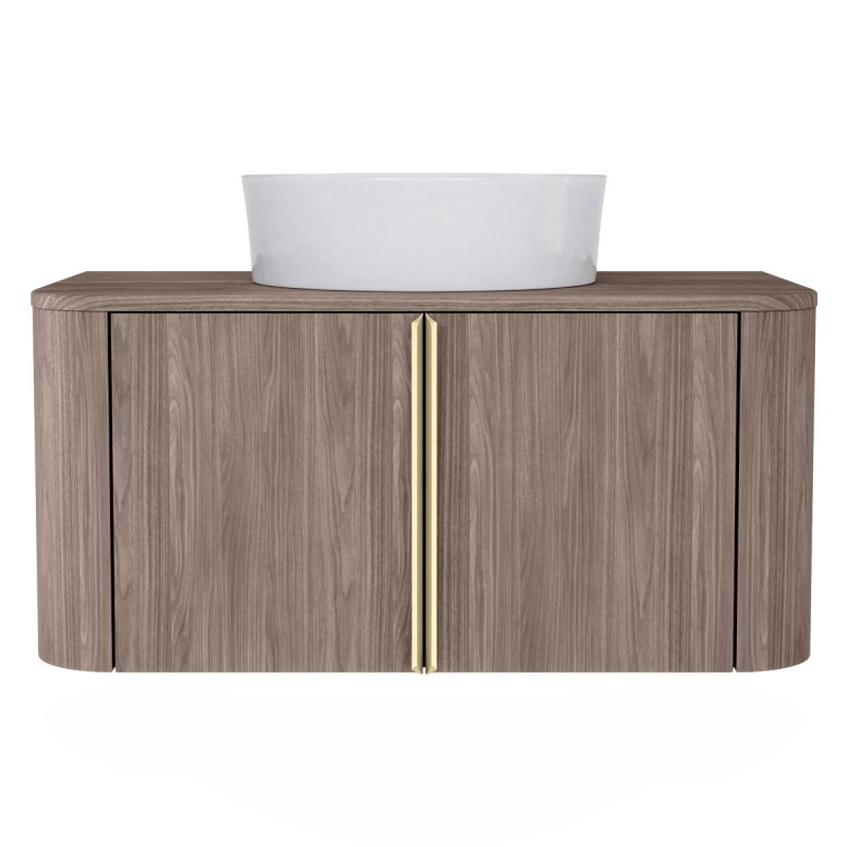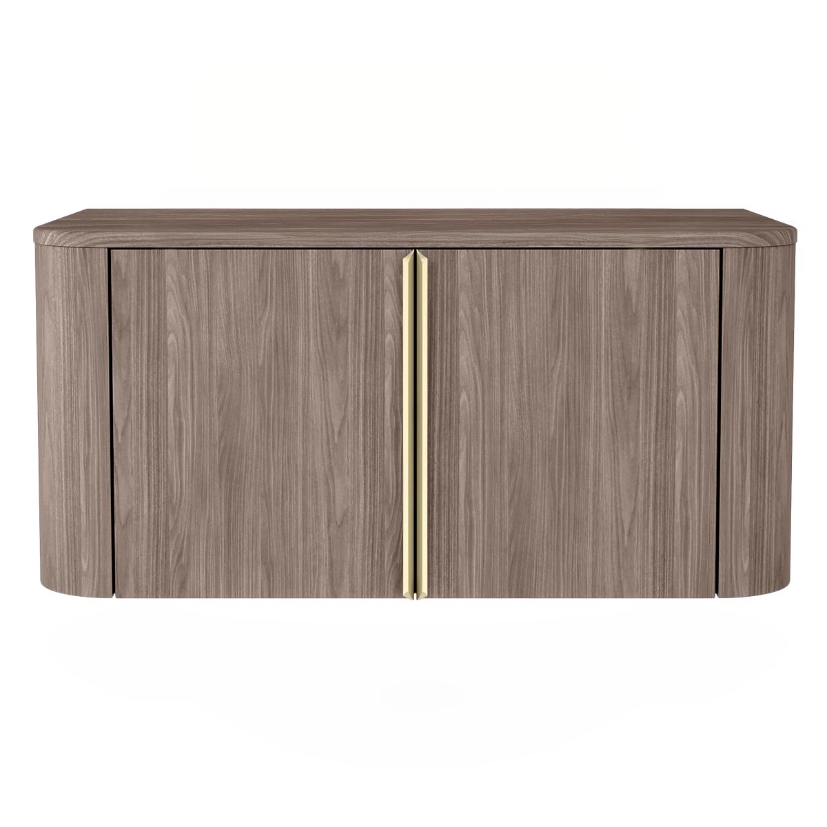 Waschtischunterschrank Bassa mit Lincoln-Nussbaum und goldenen Griffen. .. mehr