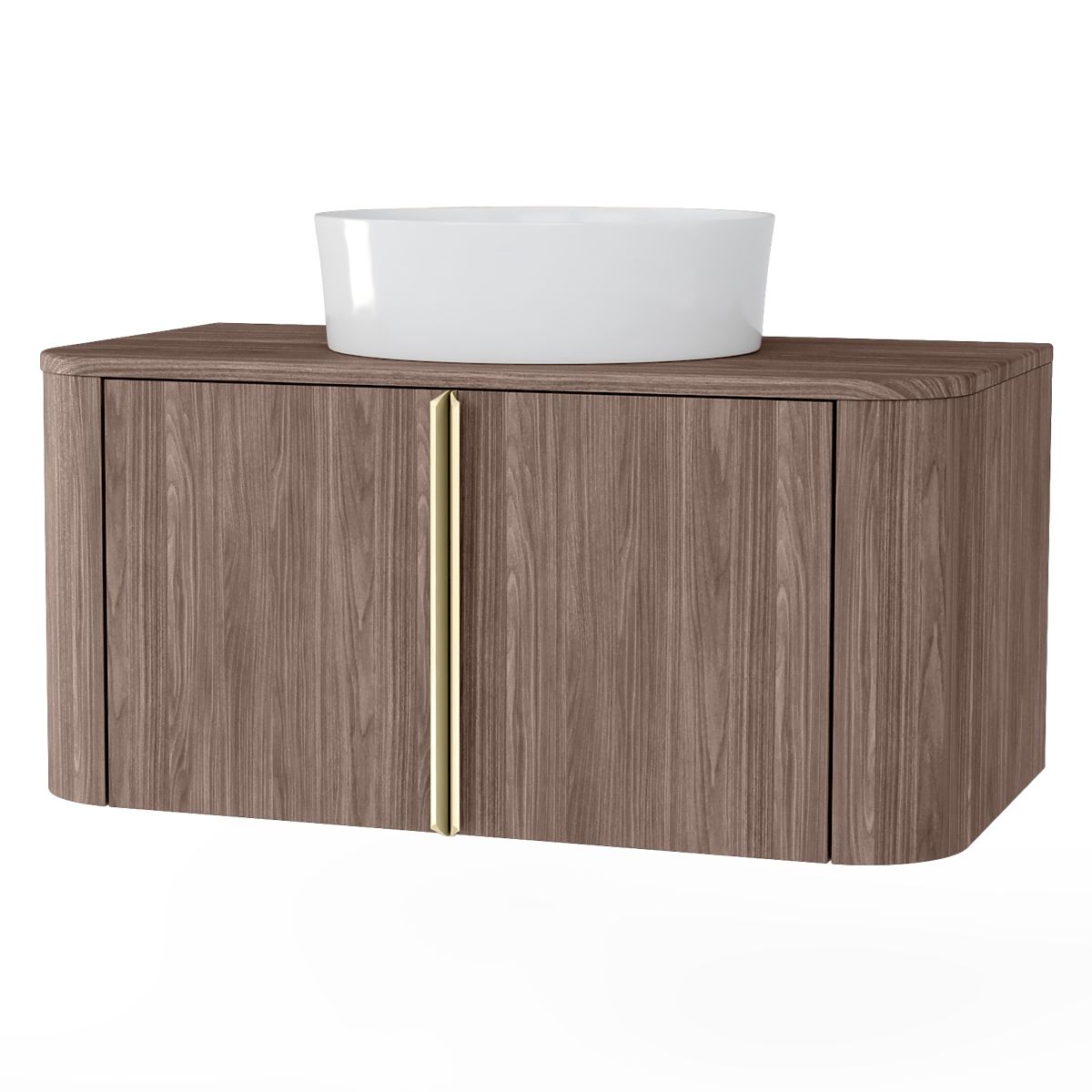 Luka-home.de » Badezimmer und Toilette / Badezimmerschränke / Waschtischunterschrank Bassa 80 cm, Lincoln-Nussbaum, goldene Griffe, abgerundet