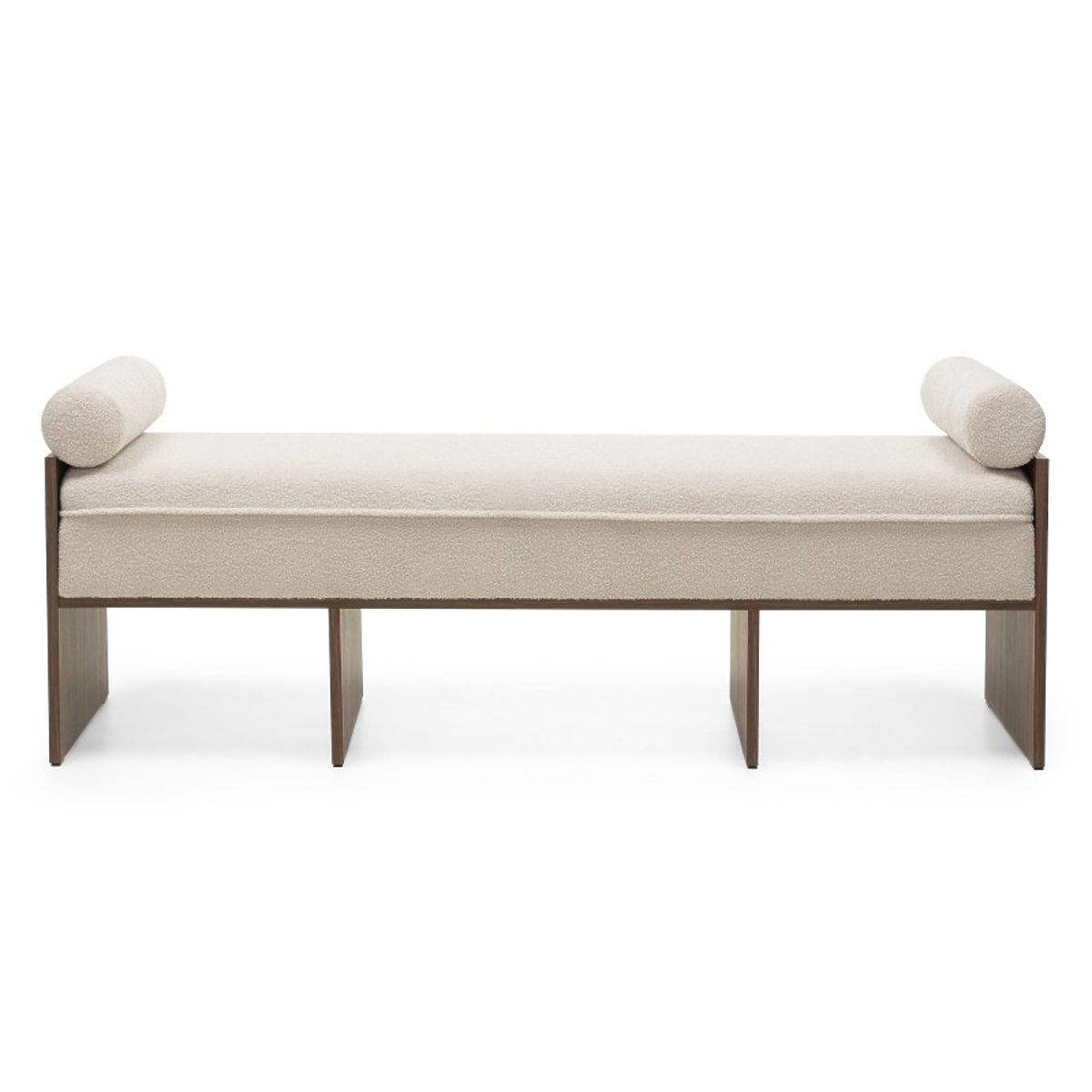 Luka-home.de » Sessel und Sitzgelegenheiten / Bank / Gepolsterte Bank Loppo hellbeige, Bouclé, Nussbaum Wisconsin