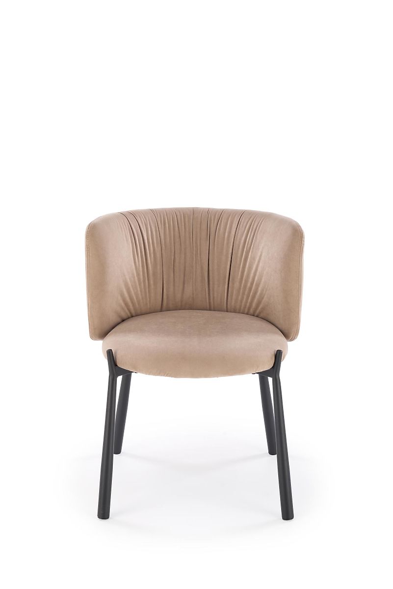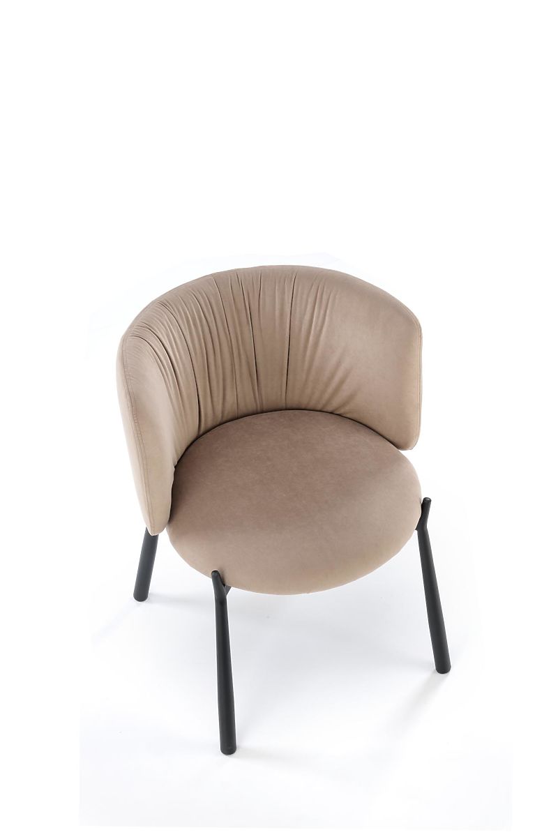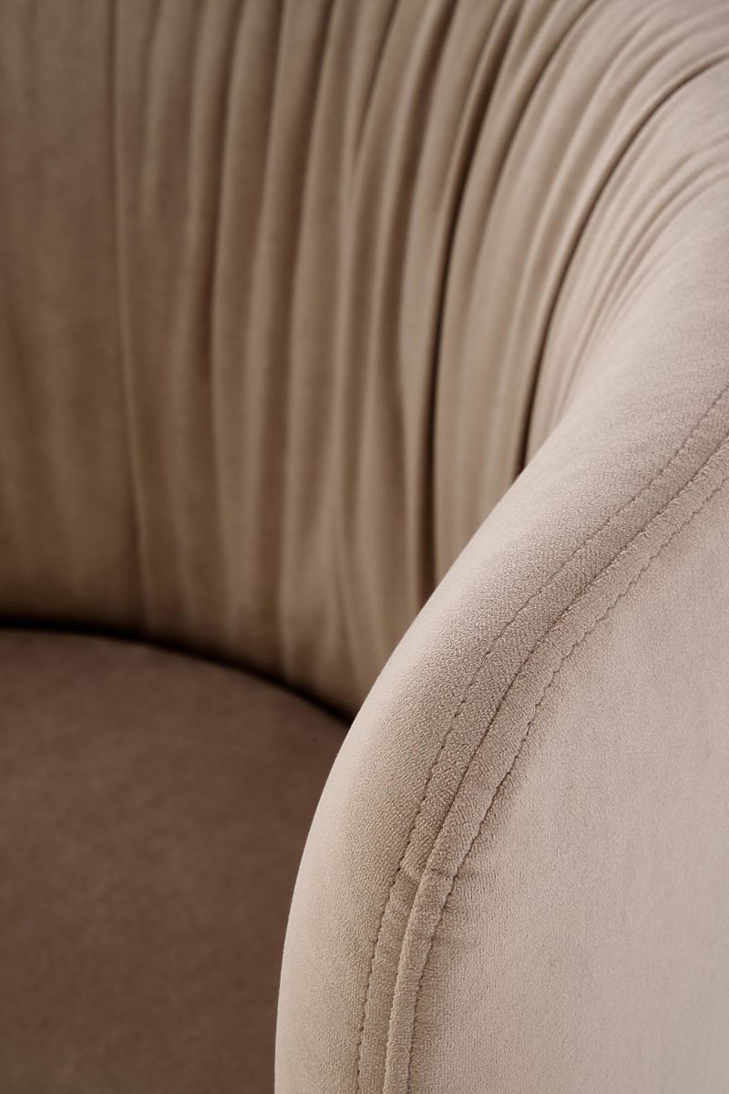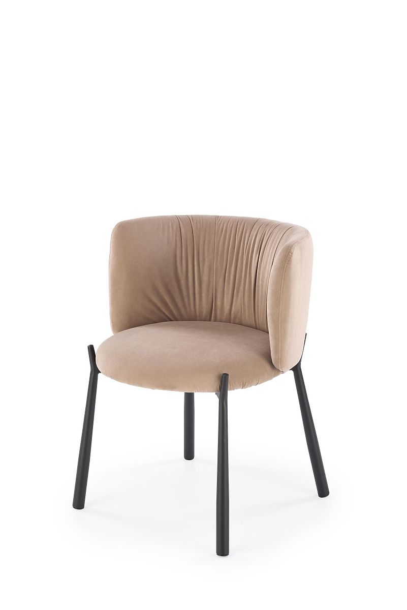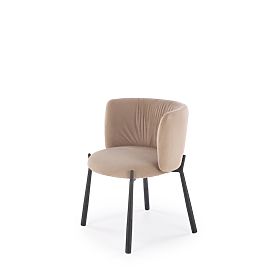 Beiger Stuhl aus Samtstoff und pulverbeschichtetem Stahl. .. mehr