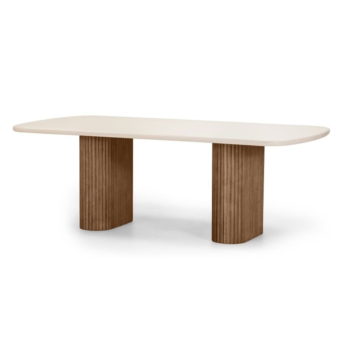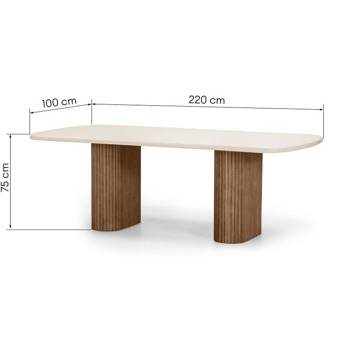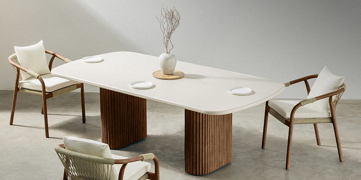 Luka-home.de » Gartenmöbel / Gartentische / Gartentisch Rovigo 220 cm mit Steinplatte, dunkles Akazienholz/hellbeige, abgerundete Formen, l