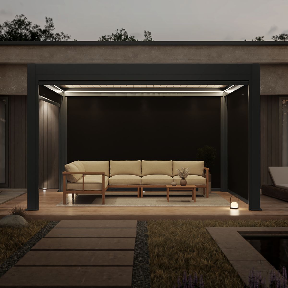 Freistehende bioklimatische Gartenpergola Lumera mit LED-Beleuchtung. .. mehr