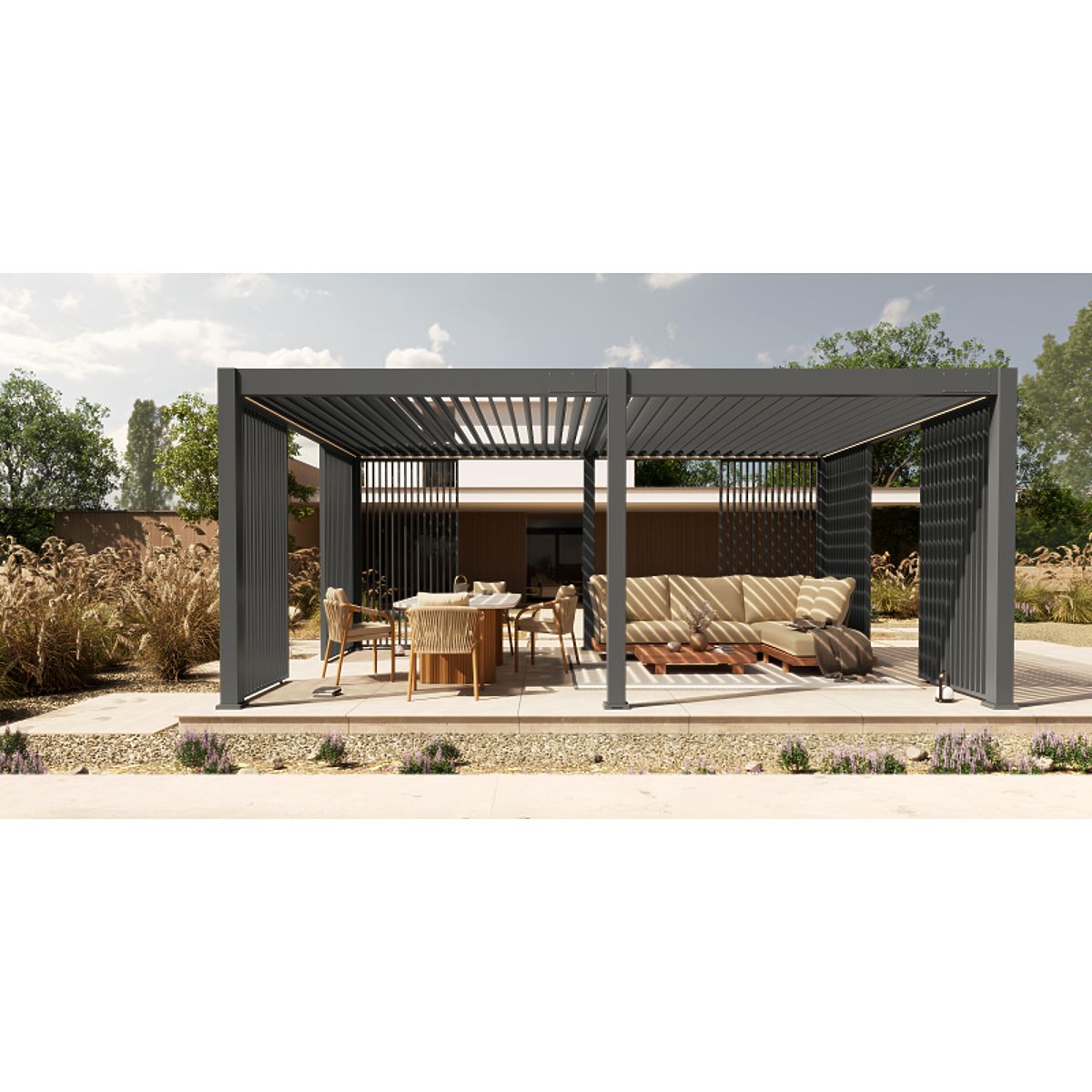 Freistehende bioklimatische Pergola mit LED-Beleuchtung und beweglichen Lamellen. .. mehr