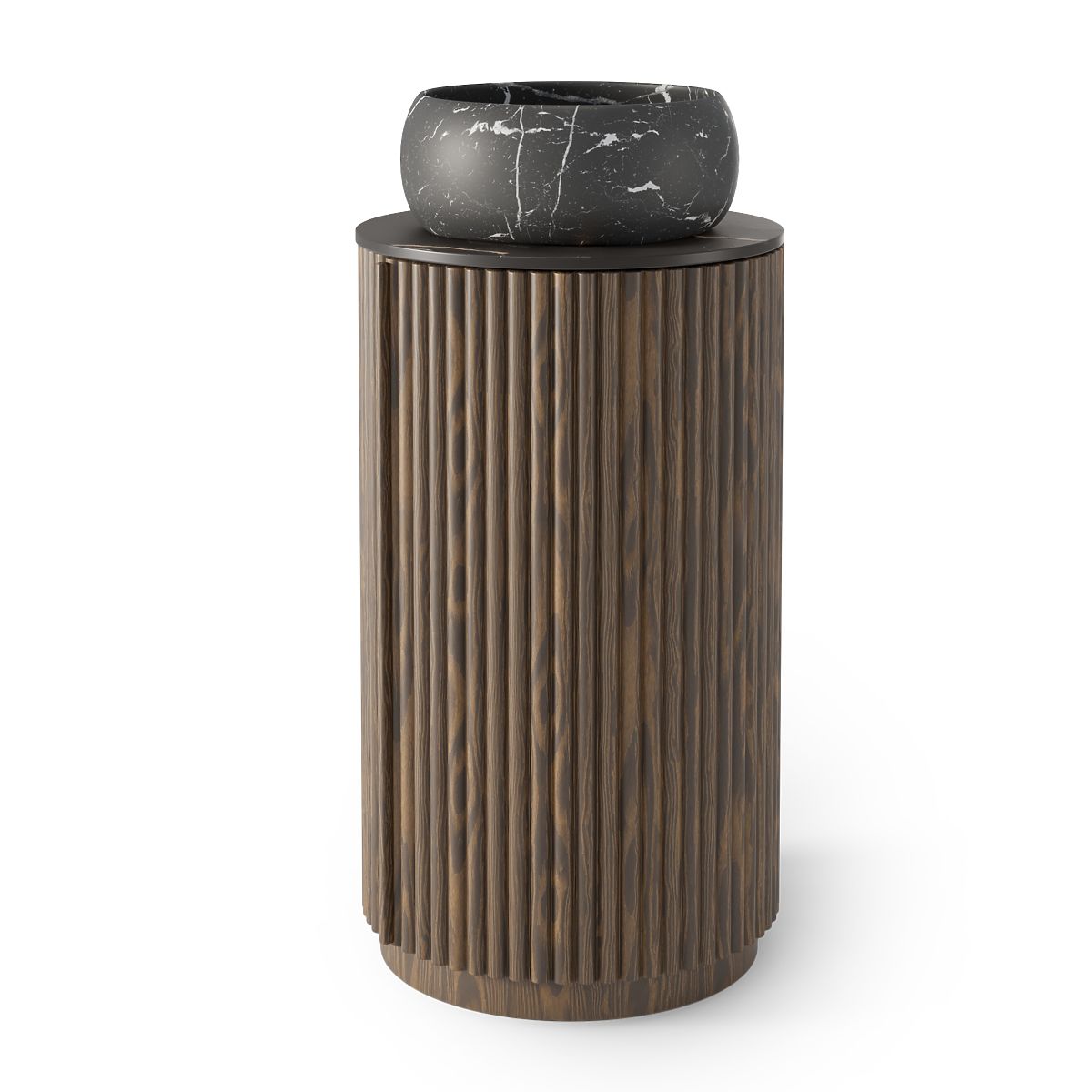 Luka-home.de » Badezimmer und Toilette / Badezimmer-Sets / Set aus Schrank mit Platte und Waschbecken La promessa 40 cm, gerillt, abgerundet, dunkle Walnuss/sc