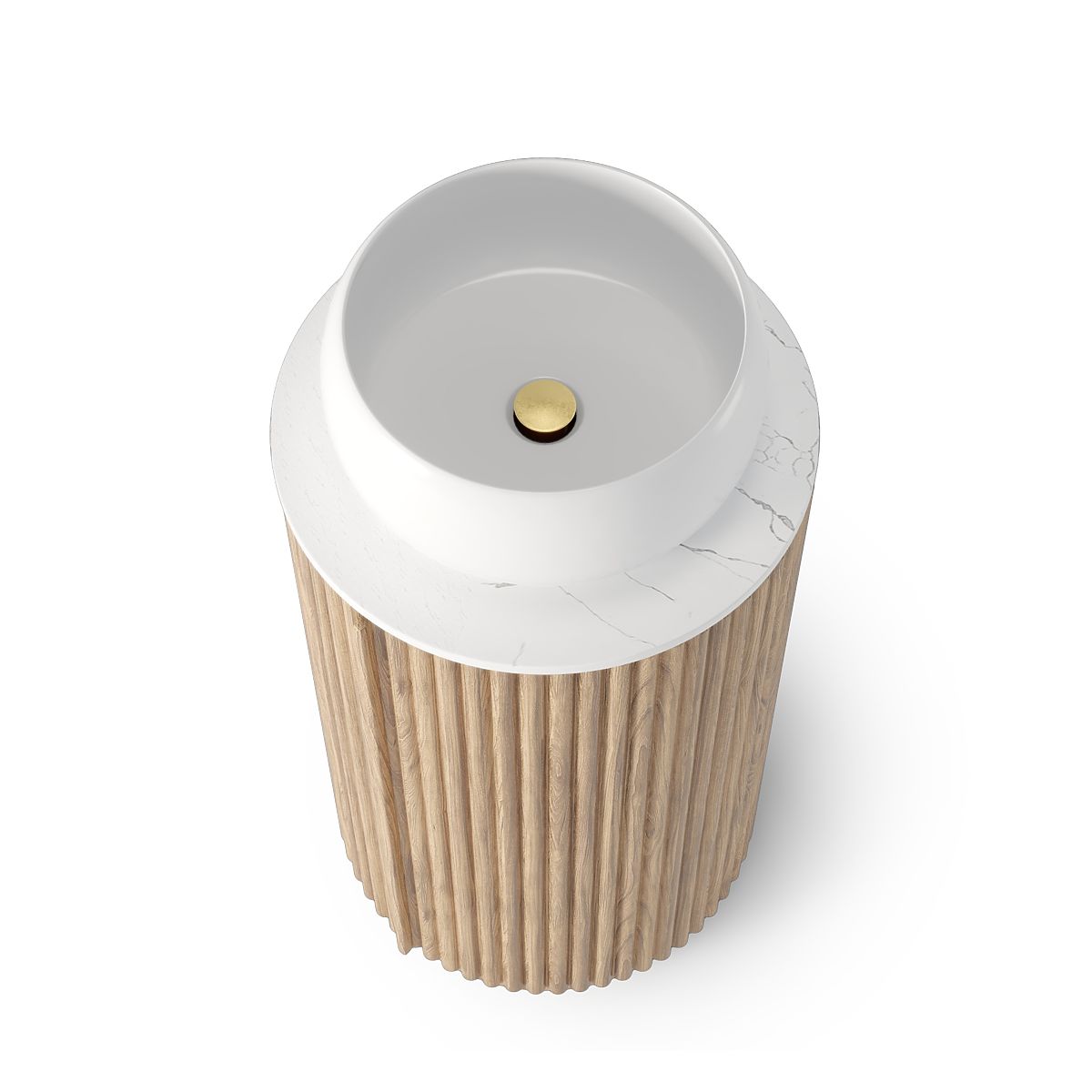 Luka-home.de » Badezimmer und Toilette / Badezimmer-Sets / Set aus Schrank mit Platte und Waschbecken La promessa 40 cm, geriffelt, abgerundet, Eiche/Weiß