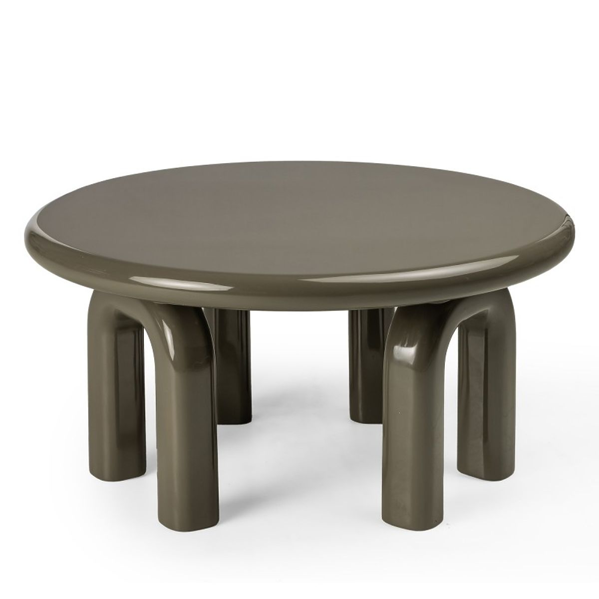 Runder Couchtisch Flambe mit grün-grauer Hochglanzoberfläche. .. mehr