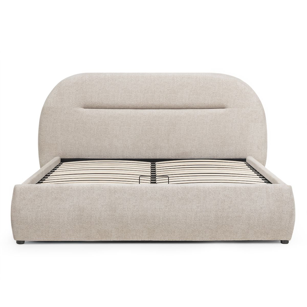 Luka-home.de » Betten / Doppelbetten / Betten 140x200 / Gepolstertes Bett Luno 140x200 cm, mit Lattenrost und Stauraum, hellbeige, abgerundet