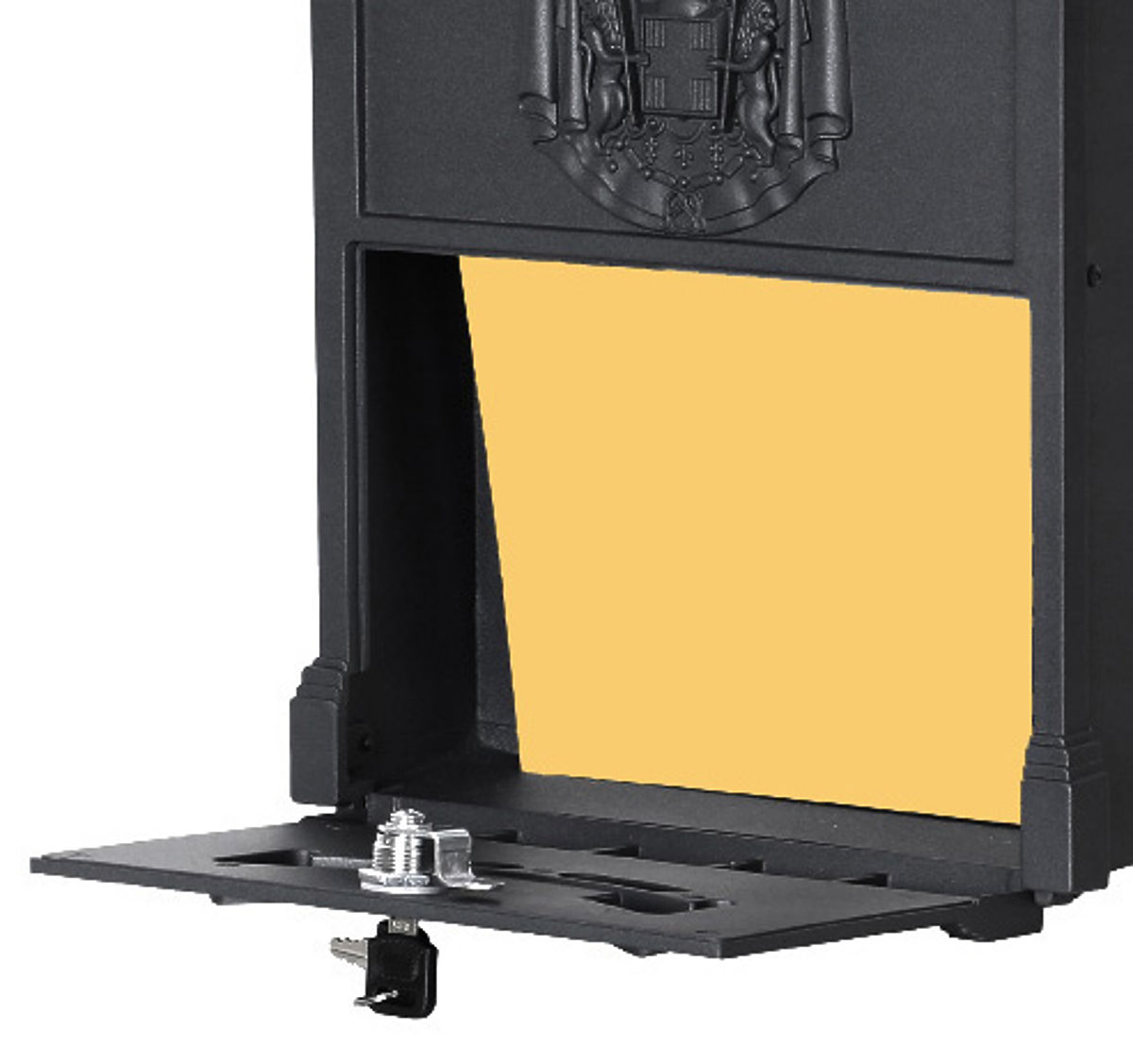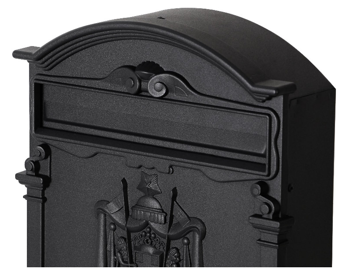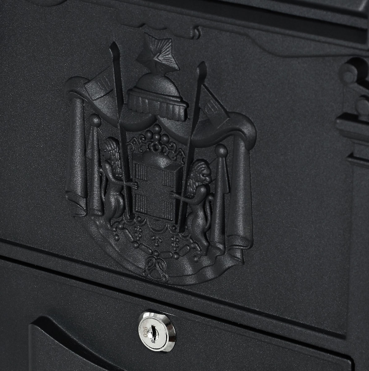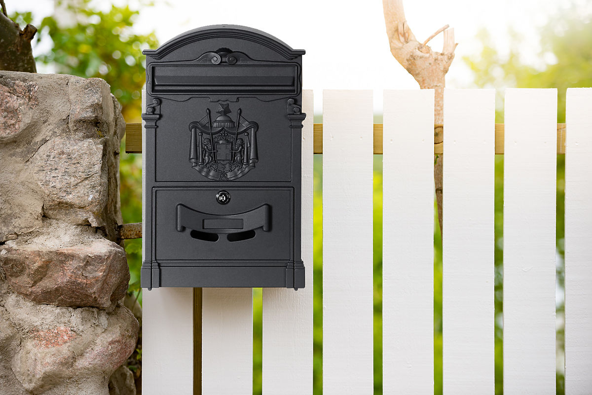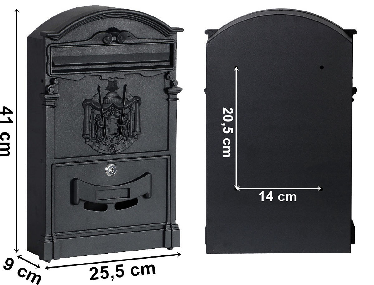 Praktischer Briefkasten aus verzinktem Stahl, pulverbeschichtet. Zeitloser Stil, der nicht zu übersehen ist. Der Kasten zeichnet sich durch einen breiten Einwurf und ein gut lesbares Fenster für den Straßennamen aus. Hergestellt aus hochwertigen, wetterbeständigen Materialien, die sicherstellen, dass alle Korrespondenzen gut geschützt sind. An der Vorderseite des Kastens befinden sich zwei kleine Öffnungen, durch die leicht erkennbar ist, ob Post eingetroffen ist.