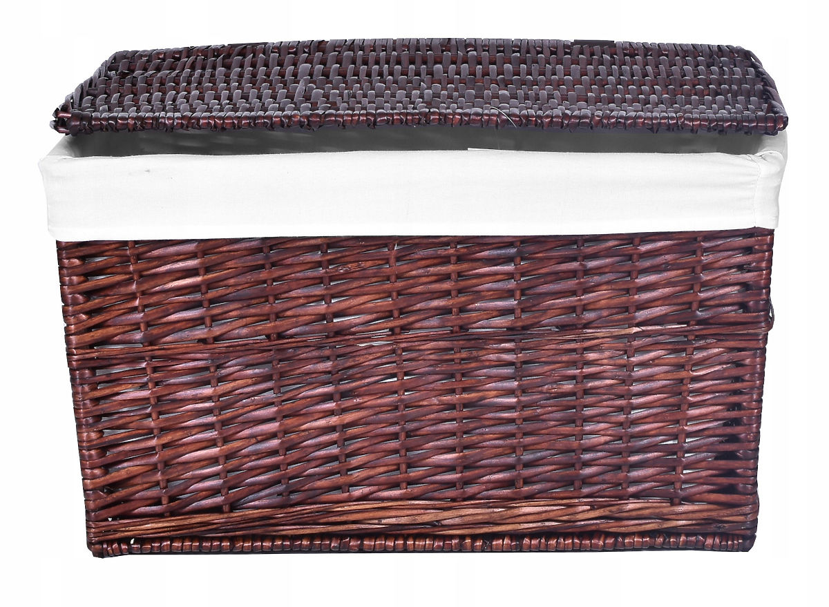 Der Weidenkorb ist eine praktische und stilvolle Lösung, die sich nicht nur für das Badezimmer, sondern auch für das Schlafzimmer, Wohnzimmer oder Kinderzimmer hervorragend eignet. Er ist ein elegantes Interieur-Accessoire, das dem Raum Gemütlichkeit und Charakter verleiht. Hergestellt aus natürlichem Weidengeflecht, besticht er durch Ästhetik und solide Verarbeitung, während das Innere mit Leinenfutter die aufbewahrten Gegenstände schützt. Der Deckel des Korbes ist mit flexiblen Bändern als Scharniere ausgestattet, was eine bequeme Nutzung und Langlebigkeit für viele Jahre gewährleistet.