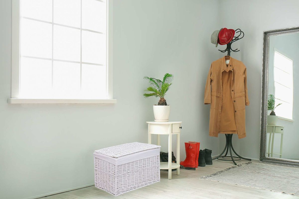 Luka-home.de   »   Badezimmer und Toilette   /   Badezimmeraccessoires   /   Weiße Weiden-Truhe 160 L