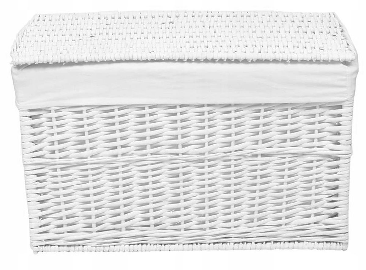 Weidenkorb 105L 66x40x40 cm weiß ⭐️ 100% natürliches Weidengeflecht ⭐️ Kapazität 105 Liter ⭐️ Handgeflochten ⭐️ In Weiß ⭐️ Kauf direkt vom Hersteller ✨Weidenkorb weiß 66x40x40 – Stilvolle Art, Ordnung im Haus zu halten✨ Der Weidenkorb ist eine praktische und stilvolle Lösung, die sich nicht nur perfekt für das Badezimmer, sondern auch für das Schlafzimmer, Wohnzimmer oder Kinderzimmer eignet. Er ist ein elegantes Interieur-Accessoire, das Gemütlichkeit und Charakter verleiht. Hergestellt aus natürlichem Weidengeflecht, besticht er durch Ästhetik und solide Verarbeitung, während das Innere mit Leinenfutter die aufbewahrten Gegenstände schützt. Der Deckel des Korbs ist mit elastischen Bändern ausgestattet, die als Scharniere dienen, was eine bequeme Nutzung und Langlebigkeit für Jahre gewährleistet. Eigenschaften: 100% natürliches Weidengeflecht Kapazität 105L Handgeflochten Innen mit Leinenfutter Elastische und ästhetische Deckelscharniere Abmessungen: Höhe: 40 cm Breite: 66 cm Tiefe: 40 cm Weitere Informationen Die angegebenen Farben sind Richtwerte - sie können aufgrund unterschiedlicher Monitoreinstellungen und Fotobearbeitungsprozesse von den tatsächlichen abweichen. Die tatsächlichen Abmessungen können von den angegebenen abweichen. Die Fehlertoleranz kann +/- 5% betragen. Marke: Gockowiak Produktcode: 5902340307953 EAN-Code: 5902340307953 Farbe: weiß Höhe: 40 cm Breite: 66 cm Tiefe: 40 cm
