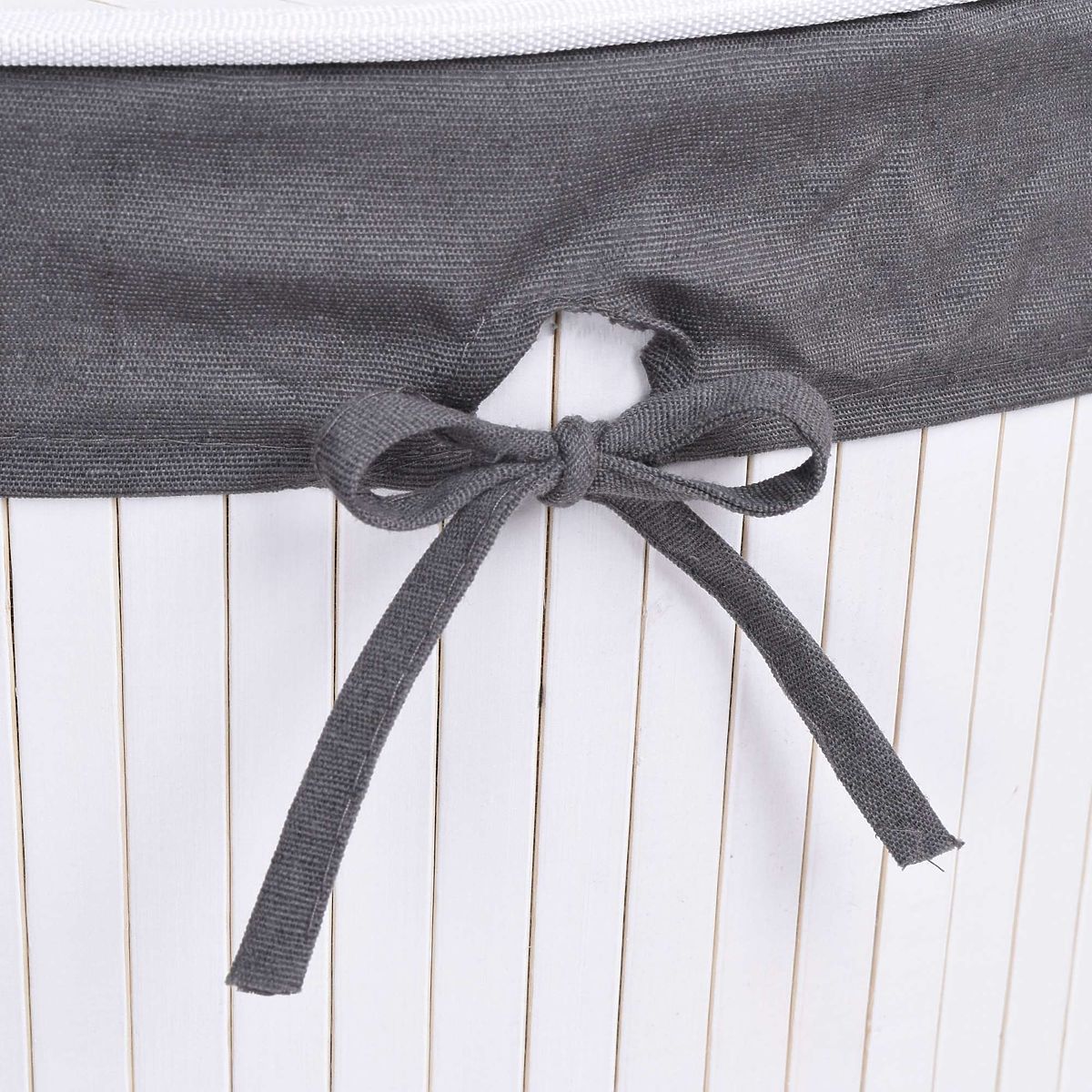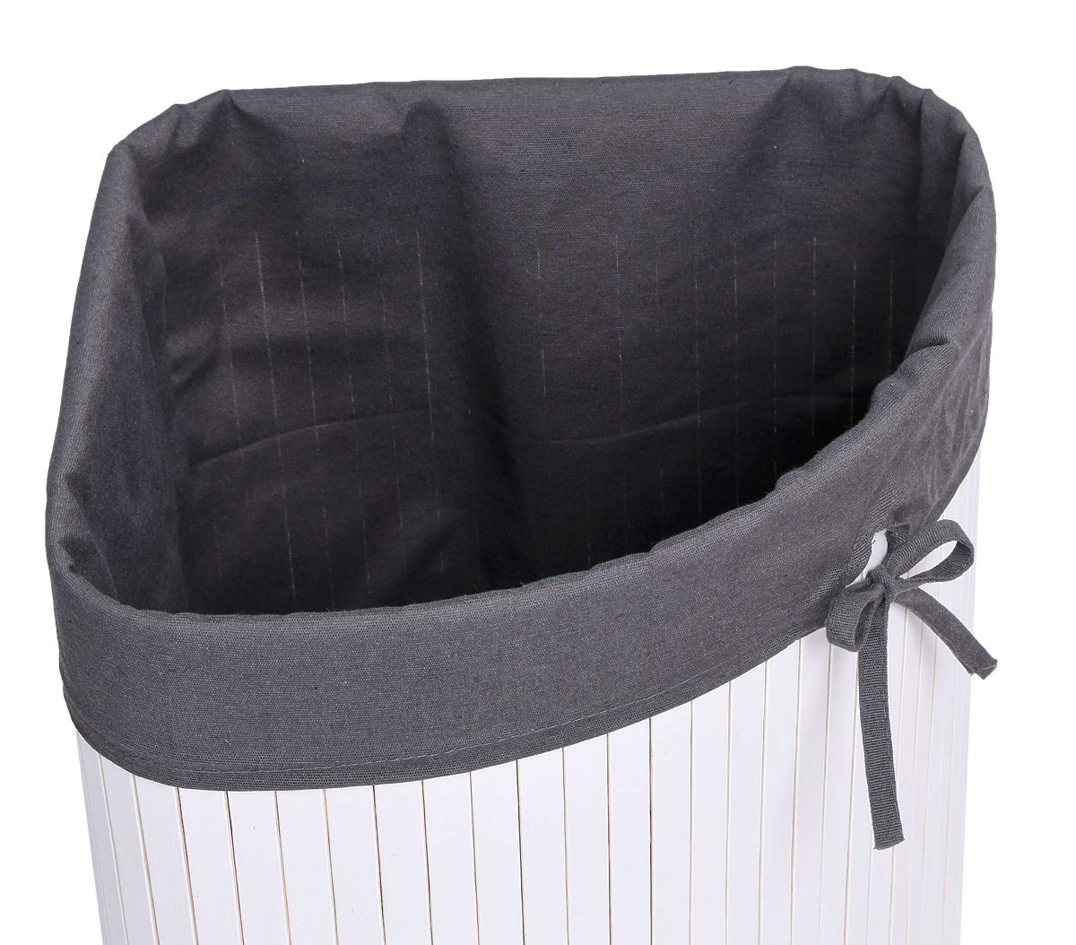Luka-home.de   »   Badezimmer und Toilette   /   Badezimmeraccessoires   /   Eckiger Wäschekorb aus Bambus mit Deckel in Weiß-Grau