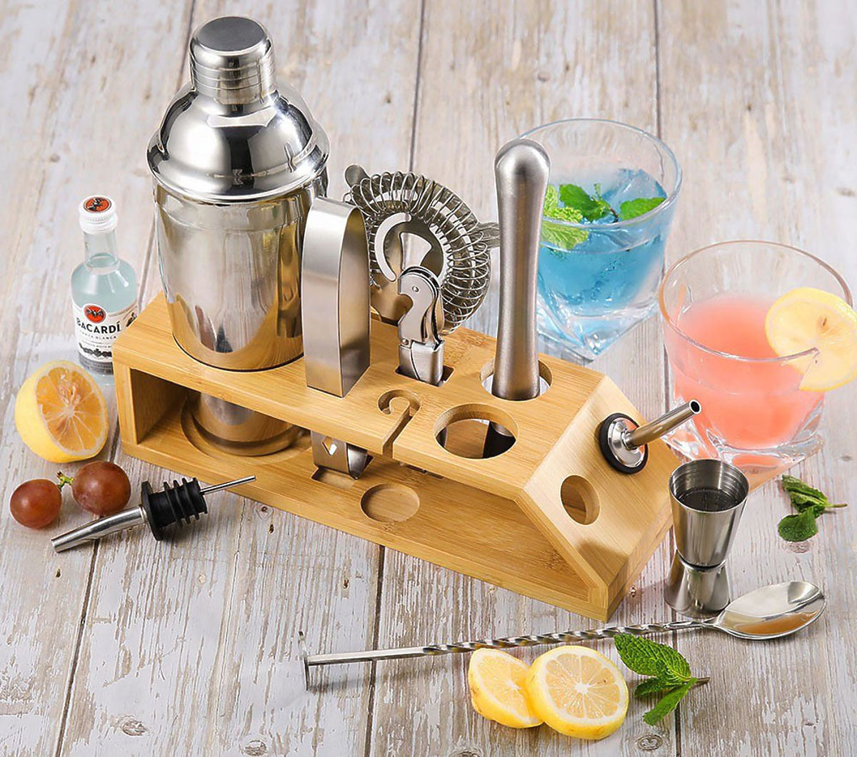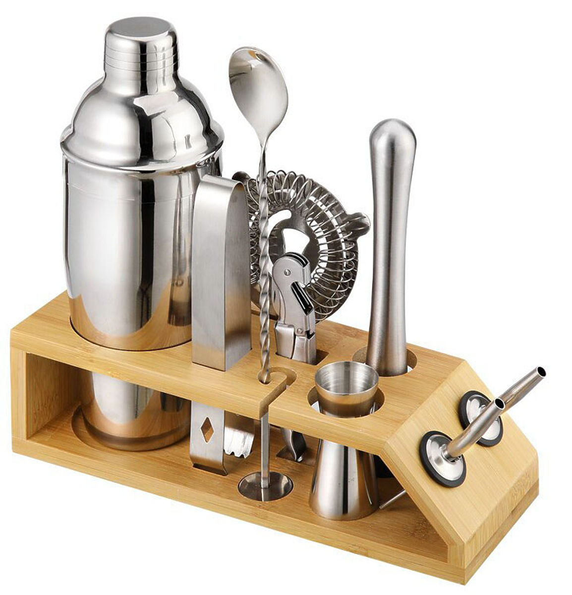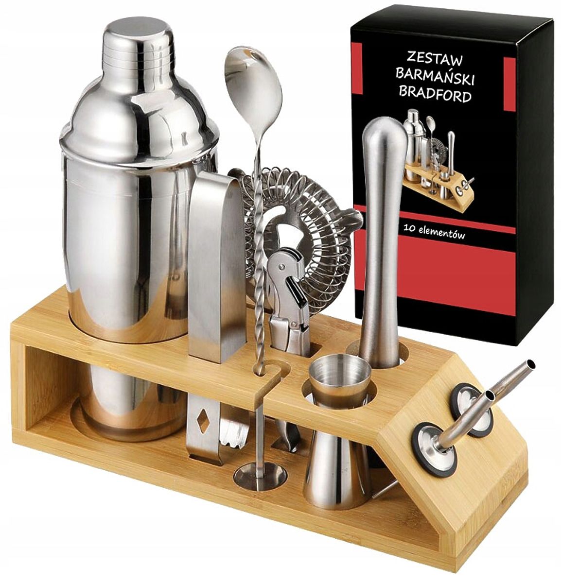 Wenn Sie sich selbst oder jemandem ein außergewöhnliches Geschenk machen möchten, sind Sie hier genau richtig. Das Barkeeper-Set Bradford besteht aus einem sorgfältig gefertigten Bambusständer und neun Edelstahlzubehörteilen. Dies ist eine wichtige Information, da Stahl chemisch nicht reagiert und den Geschmack der servierten Drinks und Getränke nicht verändert. So schmecken sie genau so, wie sie sollten.