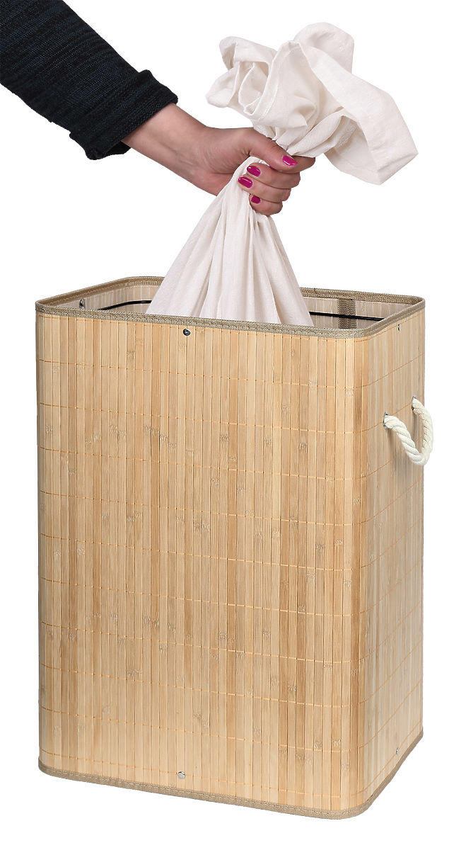 Die haltbarsten Abfallbehälter mit einer Kapazität von 80 Litern. Hergestellt aus natürlichem Bambus. Innen mit einem Stoffbeutel ausgekleidet. Einfache Konstruktion, stabile Bauweise. Verbirgt unangenehme Gerüche. Ermöglicht bequemes und schnelles Waschen.