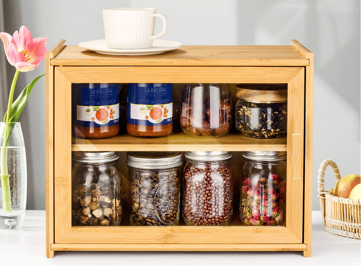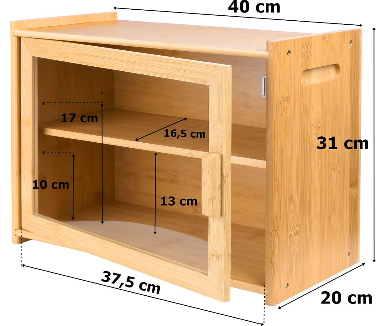Pierre ist ein zweistufiger Bambus Brotkasten aus 100% Bambusholz. Das transparente Plexiglasfenster ermöglicht eine schnelle Identifizierung des Brotes. Der Brotkasten verfügt über ausgeschnittene Griffe für einfaches Tragen. Die Höhe des inneren Regals kann nach Bedarf angepasst werden. Das Regal kann herausgenommen und nach dem Herausnehmen als Schneidebrett verwendet werden. Bei der Herstellung des Brotkastens wurden Materialien von höchster Qualität mit Augenmerk auf jedes Detail verwendet. Der Brotkasten ist ästhetisch fertiggestellt, mit glatten und abgerundeten Kanten.