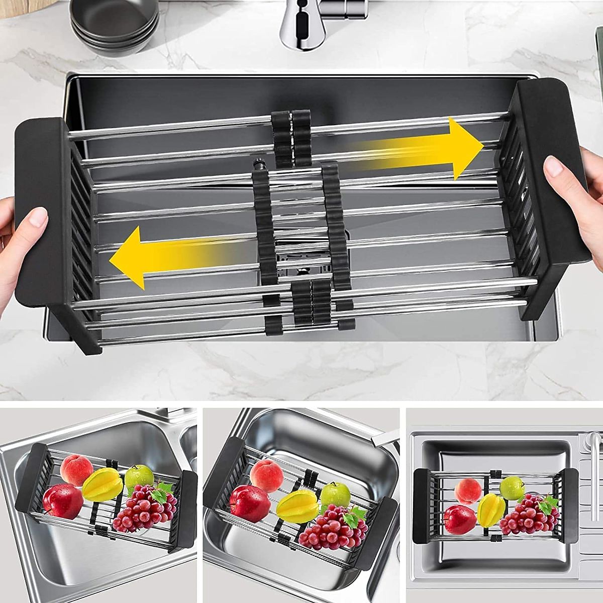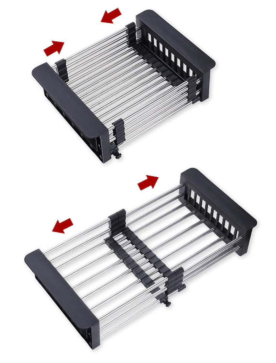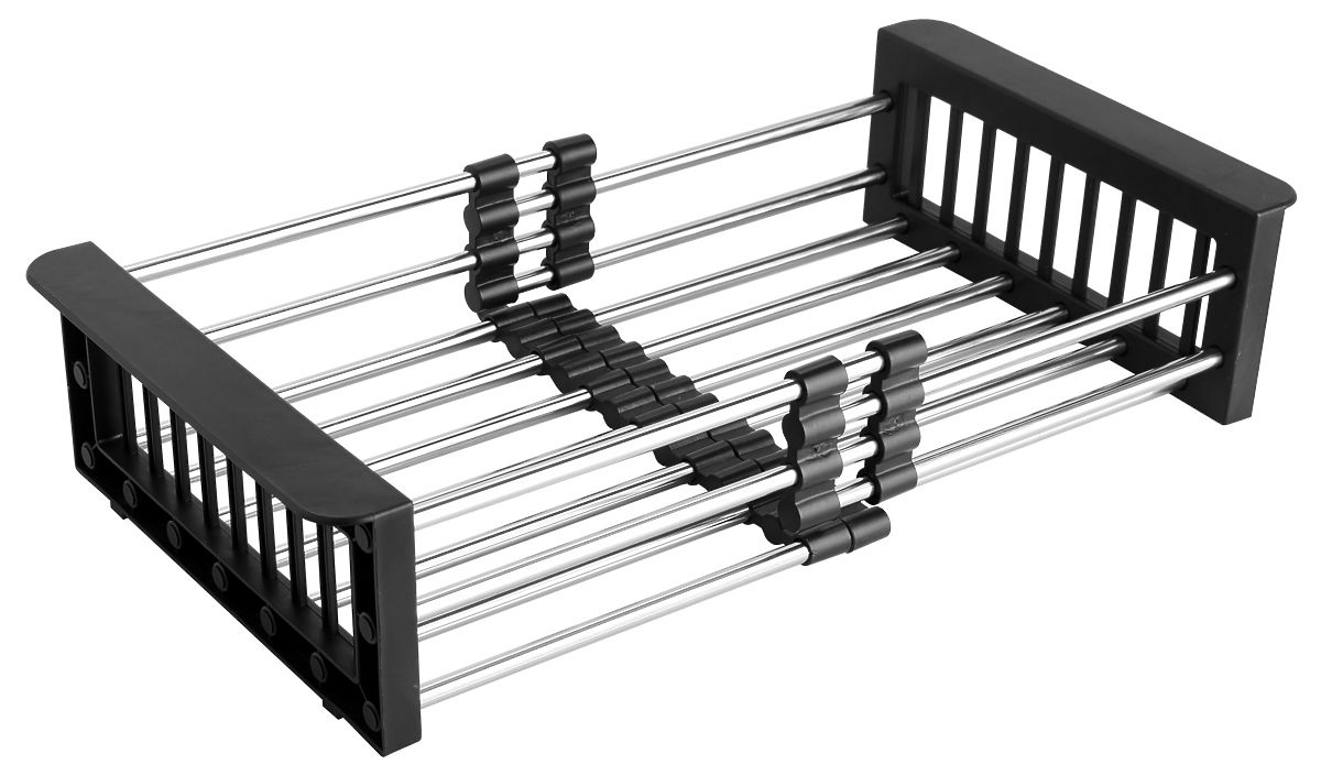 Praktischer und vielseitiger Abtropfkorb für Gemüse und Obst. Hergestellt aus robustem Kunststoff und Edelstahl. Korrosionsbeständig und sehr langlebig. Die teleskopische Konstruktion ermöglicht die Anpassung an die gewünschte Spülengröße. Der Korb ist verstellbar im Bereich von 28 cm bis 43 cm.